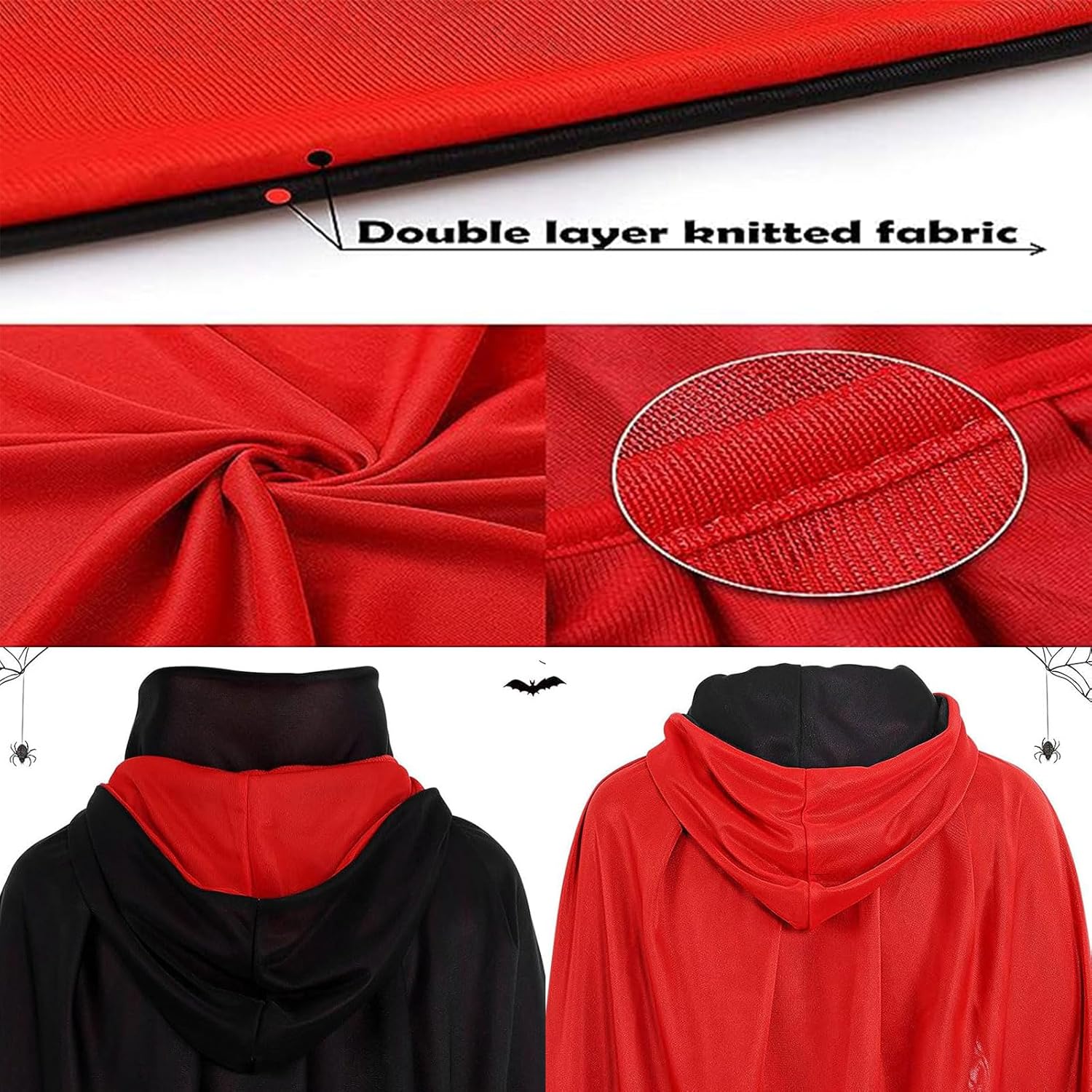 Materiale di alta qualità: il mantello da vampiro è realizzato in morbido e bellissimo poliestere, molto misterioso, collo alto, sciarpa a doppio strato, un lato è nero e l'altro lato è rosso. Facile da usare: lega insieme il mantello, legalo semplicemente intorno al collo, legalo sulle spalle, adatto per l'uso domestico, oppure puoi indossarlo secondo la tua personalità, ti offrirà l'esperienza più confortevole per la tua festa. Divertiti e stupisci i tuoi ospiti. Unisex: mantello da vampiro lunghezza 120 cm. Adatto per 150 cm-170 cm, scegli la lunghezza in base alla tua altezza, adatto non solo per adulti ma anche per adolescenti. Design fronte-retro: il mantello fronte-retro nero e rosso può essere utilizzato su entrambi i lati per soddisfare le diverse esigenze della festa. come vampiro, come mago, come strega o qualcos'altro. puoi anche ridefinirlo in qualcosa di nuovo ogni volta per Carnevale o Halloween. Versatile: il mantello da vampiro è perfetto per feste cosplay, feste in maschera, feste in maschera, feste di Halloween e molte altre occasioni, rendendoti accattivante.