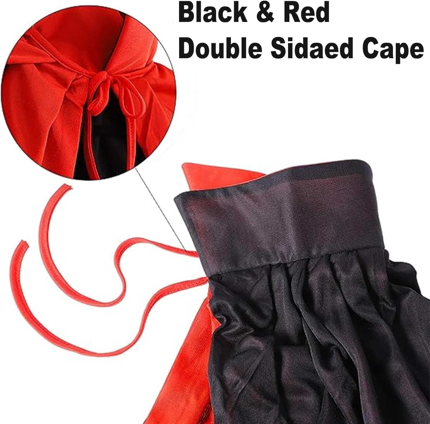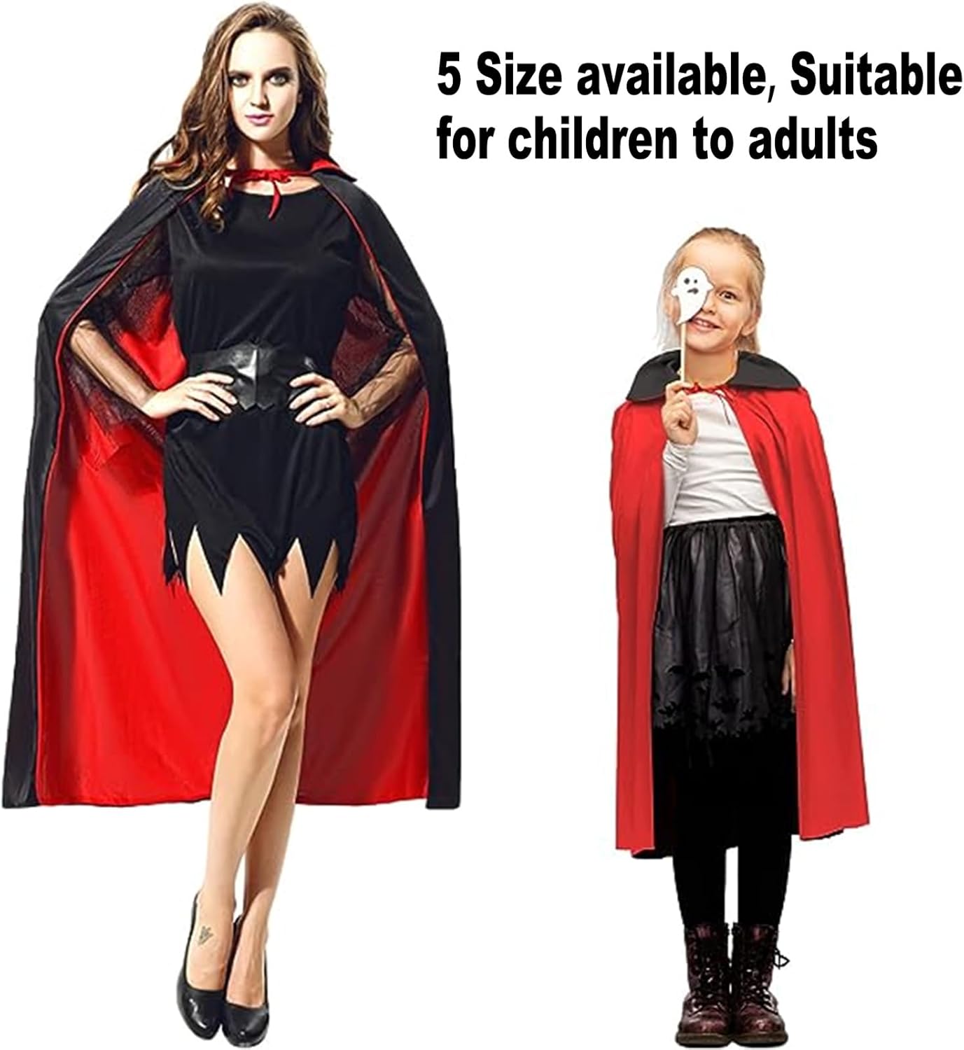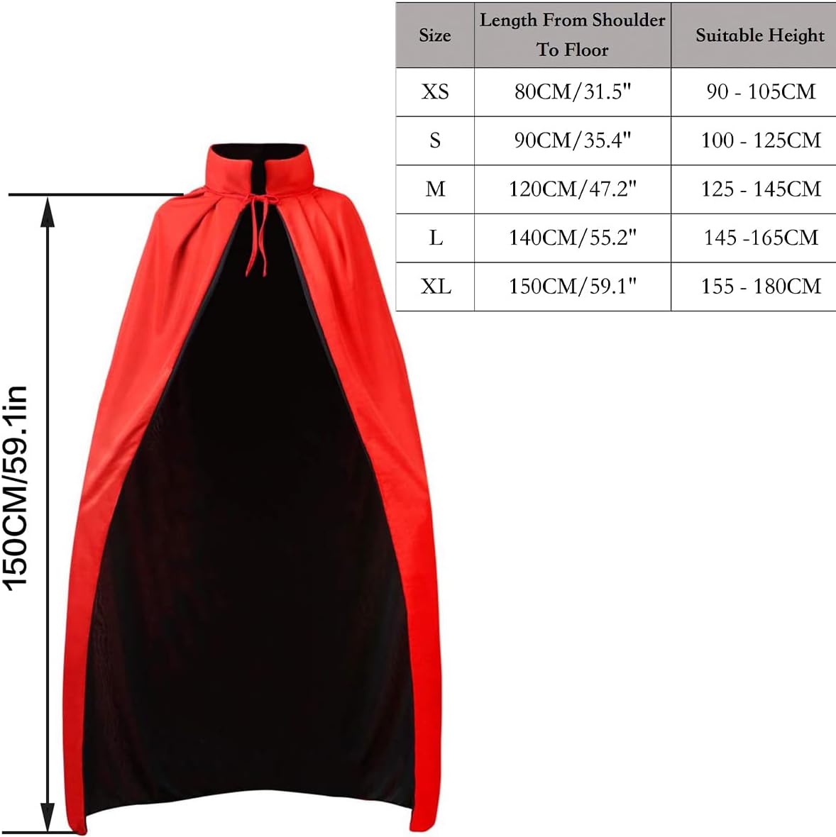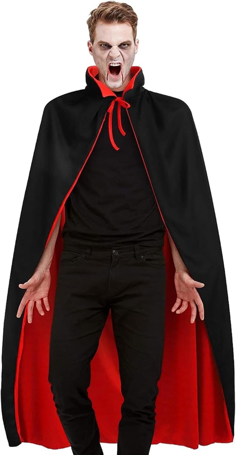 ✔Alta qualità - Il mantello di Halloween è realizzato in un tessuto a maglia leggero e di alta qualità, sottile e confortevole sulla pelle. ✔Double Sided - Black Red Double Sided Cape Può essere utilizzato su entrambi i lati per soddisfare le diverse esigenze di partito.Sia come un costume per la morte, come un vampiro, come un mago, come una strega o qualcosa di completamente diverso.Si può anche ridefinire in qualcosa di nuovo ogni volta per il costume o Halloween. ✔Design del colletto - Colletto in piedi per un look fresco, quando si indossa il mantello fresco, si diventa straordinario e attraente in Halloween e altre maschere speciali. ✔Taglia - L, lunghezza tra la spalla e il fondo è 59.1"/150cm, costume classico di Halloween per ragazzi e ragazze. ✔Lavabile - Lavando a mano, la mantella avrà sempre lo stesso aspetto.