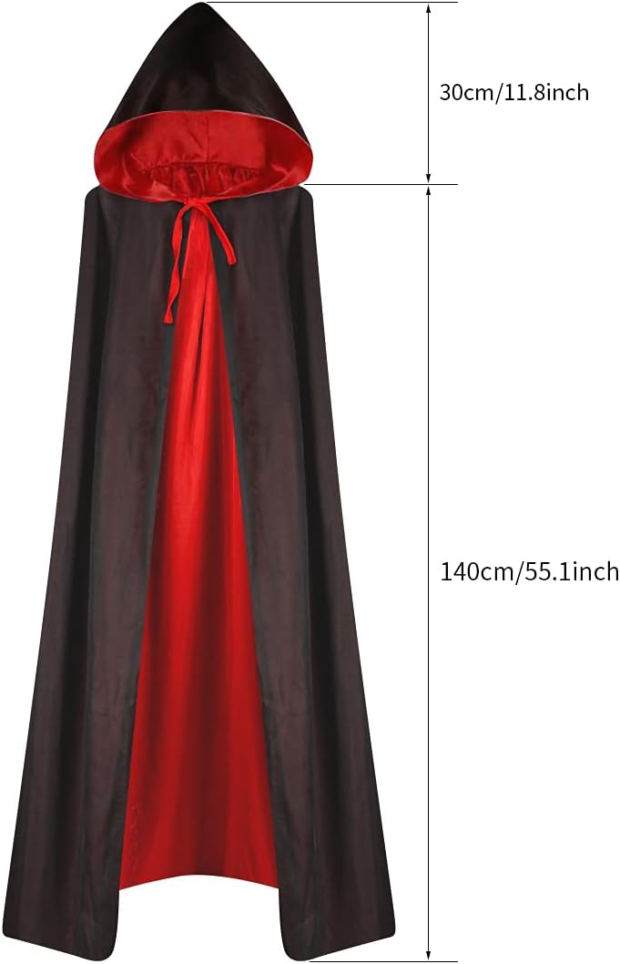 🧛Taglia perfetta: il mantello da vampiro è lungo 140 cm dalla spalla all'orlo e il cappello è lungo 30 cm. La lunghezza del mantello di Halloween è adatta per adulti e bambini e può essere indossata sia da uomini che da donne. Il cappuccio è abbastanza grande da adattarsi alla maggior parte delle forme della testa. La corda sul mantello può aiutarti a sistemare il mantello in modo che non cada. 🧛Buon tessuto: il materiale principale del costume vampiro è il cotone. Il tessuto è leggero e bello, con trama e può darti un'esperienza morbida e confortevole. 🧛Mantello a doppia faccia: il costume dracula è rosso e nero, sia davanti che dietro può essere indossato. Il rosso e il nero possono essere usati per interpretare ruoli diversi. 🧛Gioco di ruolo: il reversibile mantello può essere utilizzato per feste di cosplay di Halloween, feste di carnevale, feste in maschera, spettacoli teatrali e altre occasioni. Puoi interpretare vari ruoli come streghe, maghi e demoni con esso. 🧛Star della festa: indossando un mantello con cappuccio Nero Rosso alla festa di ruolo di carnevale di Halloween, puoi attirare l'attenzione di più persone e diventare la star della festa.