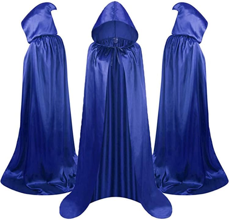 Design: elegante mantello con cappuccio in colore blu reale con una lunghezza di 110 cm per un look maestoso Materiale: tessuto con lavorazione di alta qualità per il massimo comfort CAPPELLO: cappuccio dal taglio generoso con chiusura regolabile per una vestibilità ottimale Chiusura: pratiche fasce sul petto consentono una regolazione individuale Versatilità: ideale per feste in costume, spettacoli teatrali o come accessorio elegante per occasioni speciali