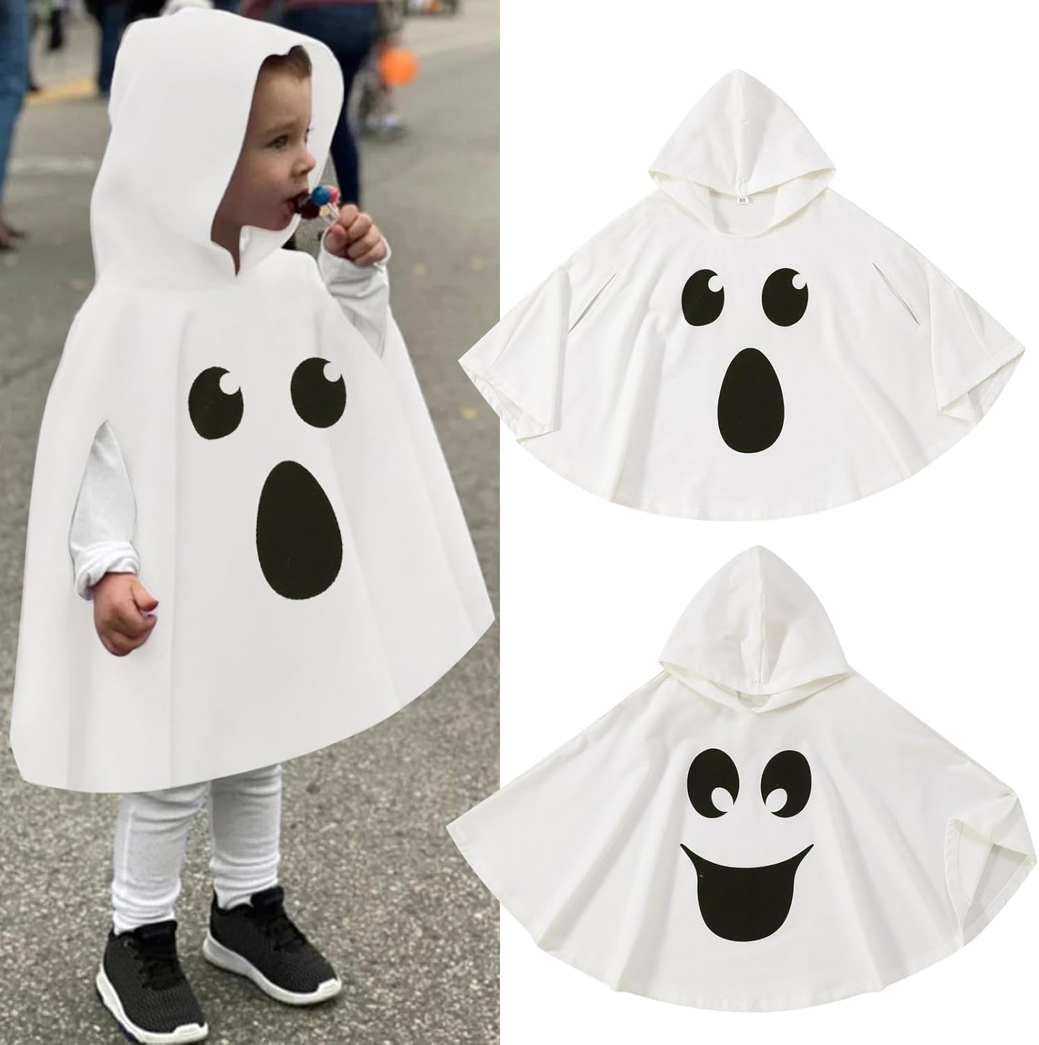 [Design] Il costume da fantasma per bambino è in classico bianco, stampato con un motivo nero sorridente con la faccia di un fantasma orlo a zigzag, voi bambini sarete molto carini e giocosi da indossare. [Materiale] Il costume da fantasma per bambini di Halloween è realizzato in poliestere di alta qualità, morbido, traspirante e delicato sulla pelle. [Regalo] Questo vestito da fantasma per bambino è perfetto per bambina, bimbo, bimba, ragazza, ragazzo, è un fantastico regalo di Halloween per i bambini. Il tuo piccolo sarà al centro della festa di Halloween con questo costume da fantasma. [Occasione] Questo vestito da fantasma bianco è perfetto per festa a tema Halloween, dolcetto o scherzetto, gioco di ruolo, festa a tema divertente, festa di cosplay di fantasmi, sfilata notturna di carnevale, mascherata, riunioni di famiglia e altro ancora. [Taglia] Si prega di scegliere la taglia in base all'età e all'altezza del bambino.