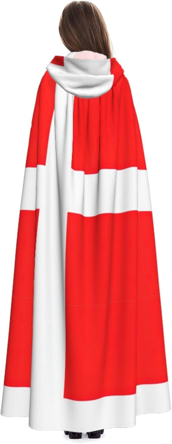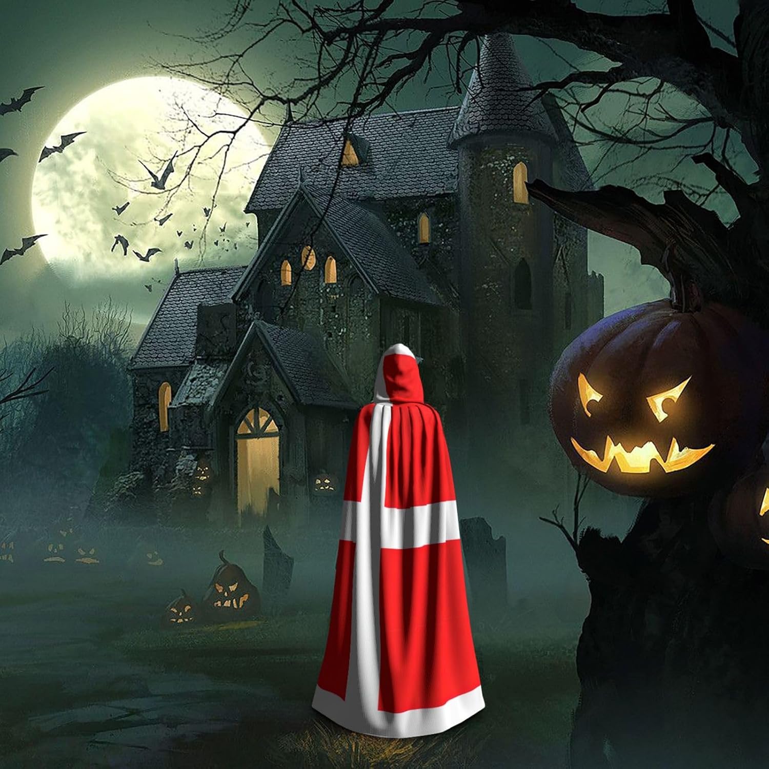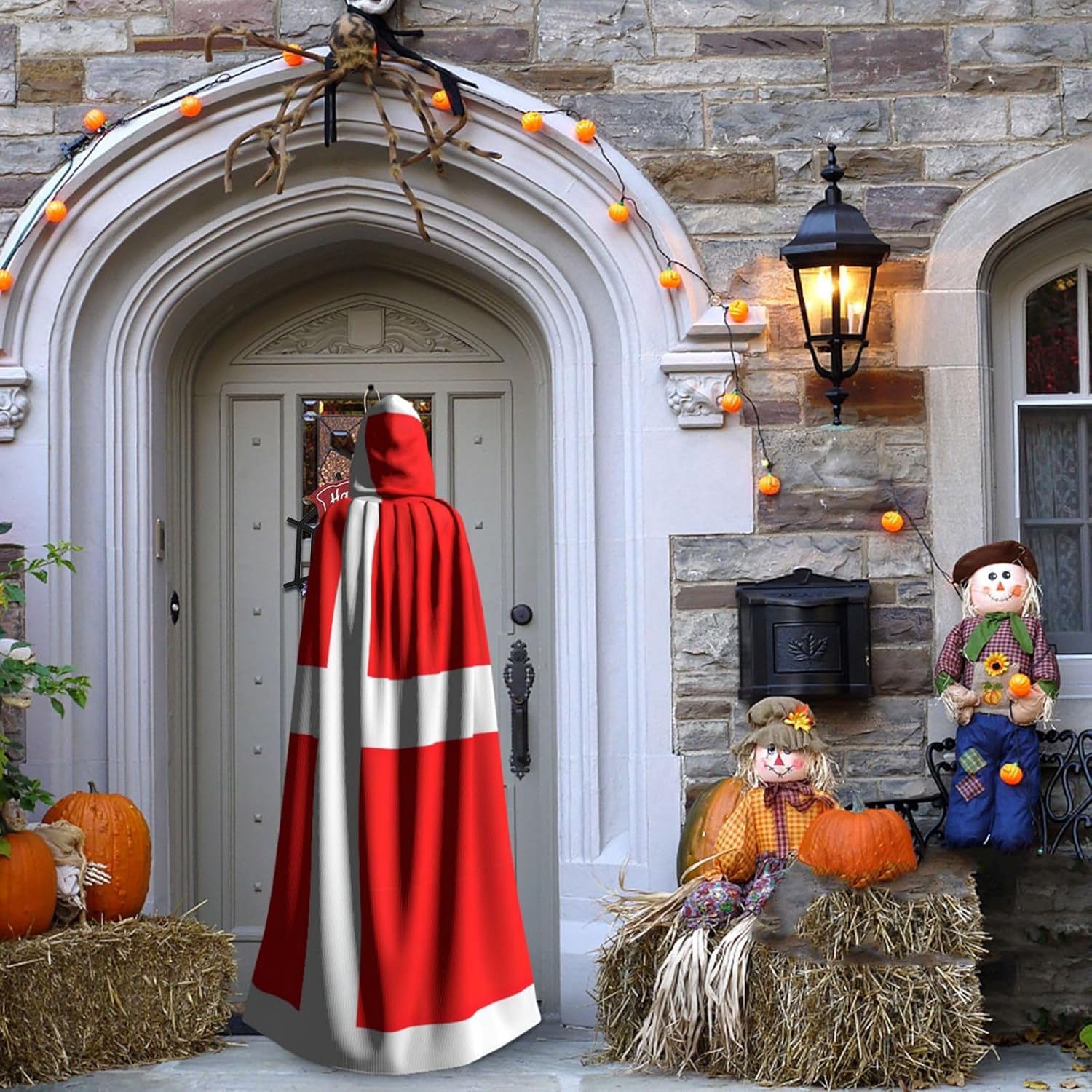 Mantello lungo con cappuccio con stampa della bandiera danese della Danimarca, mantello lungo con cappuccio, costume per feste a tema e giochi di ruolo