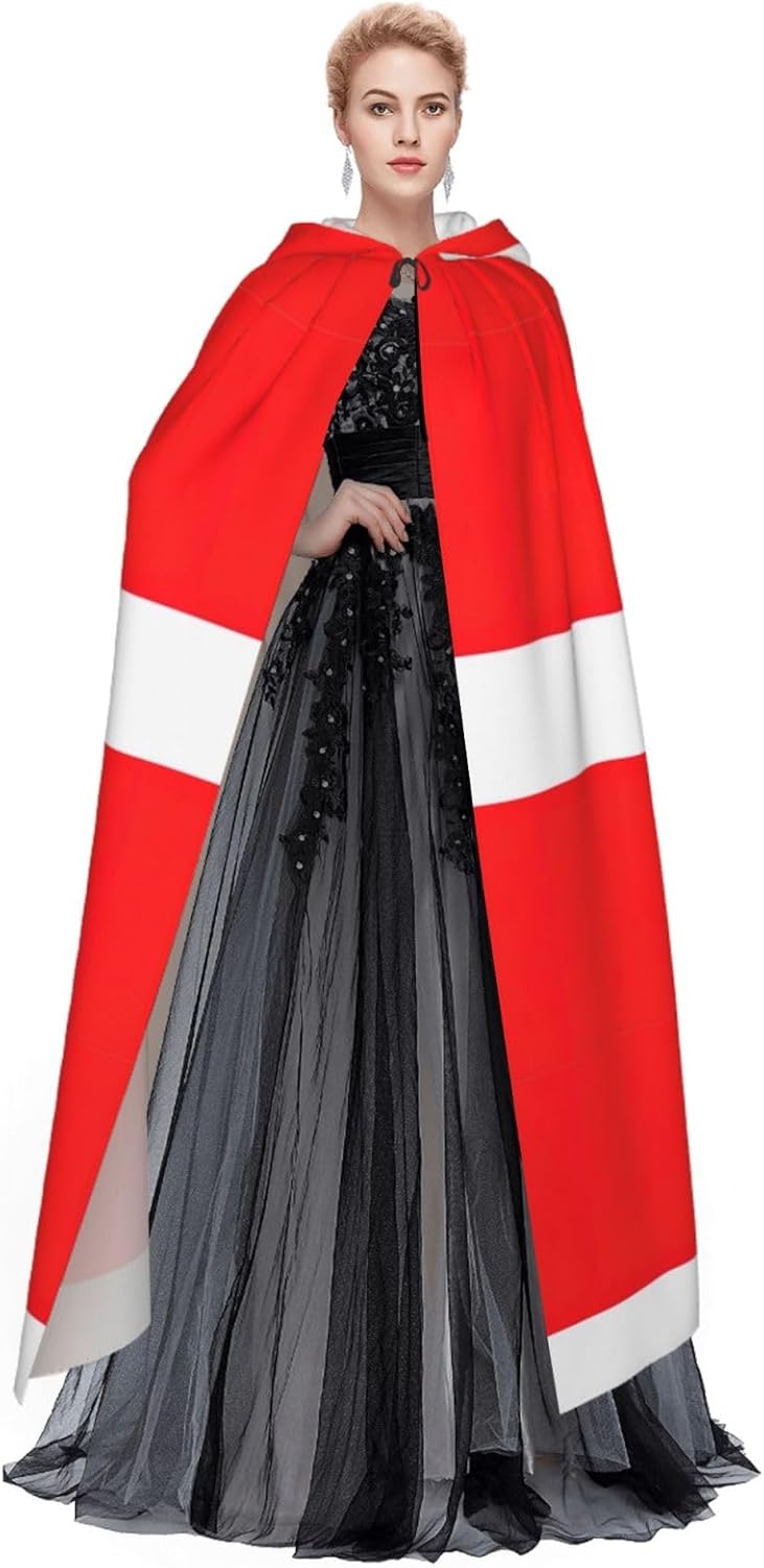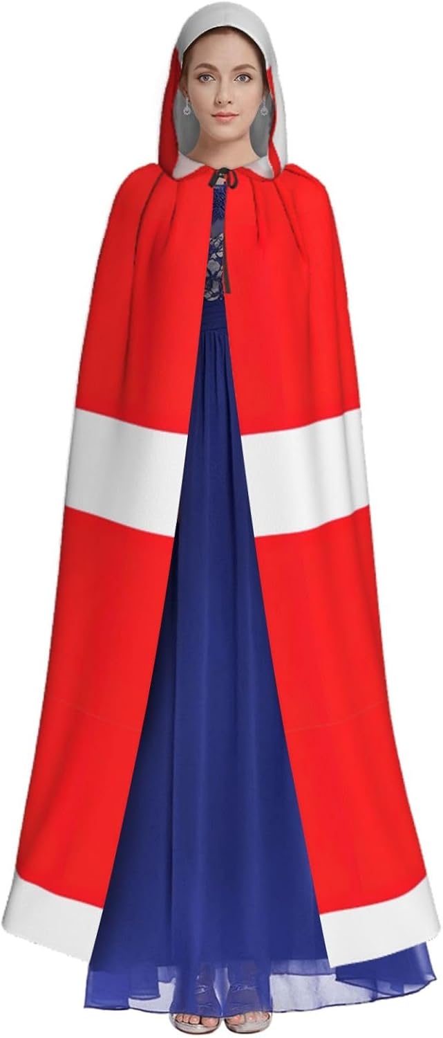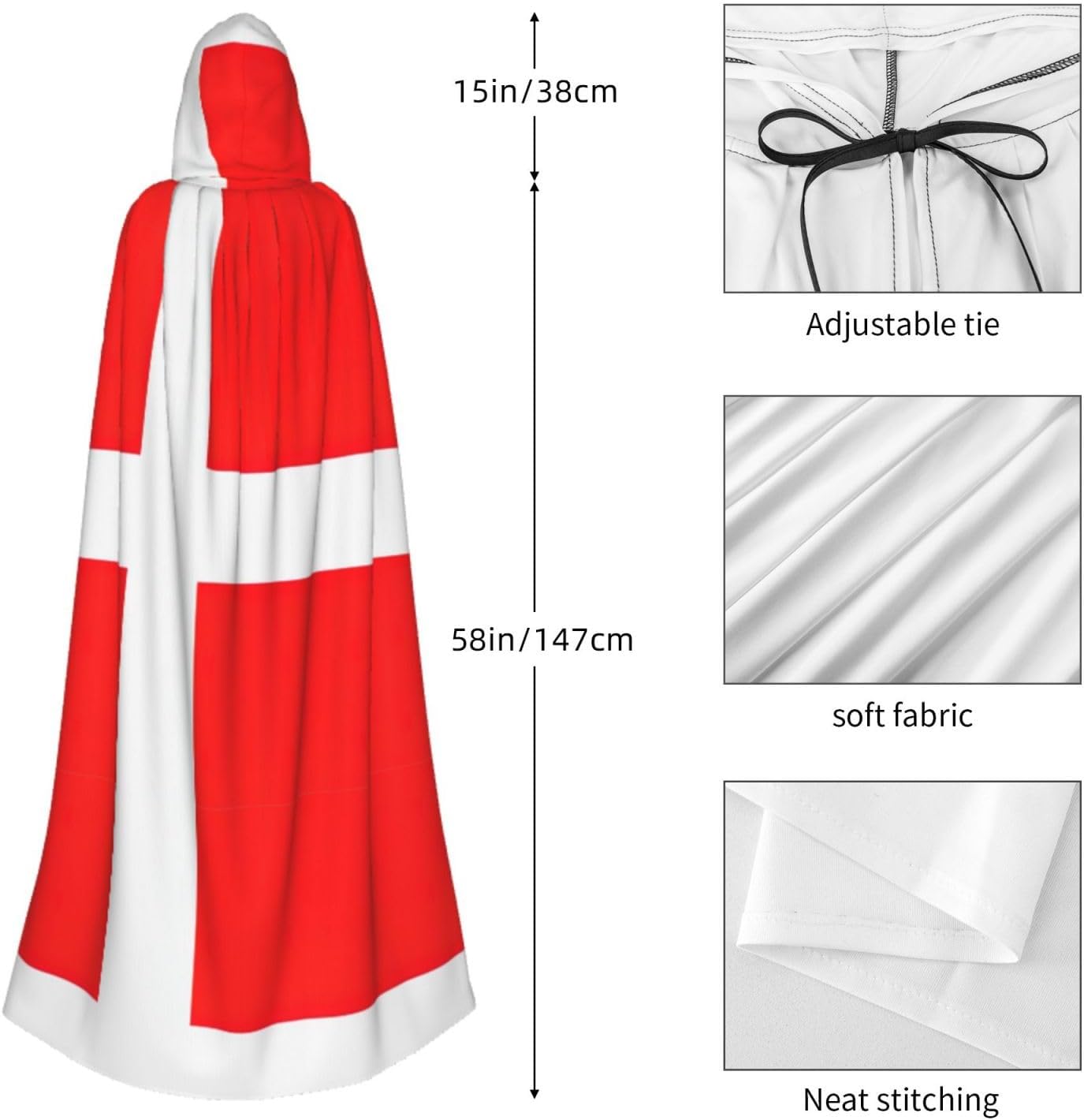Mantello lungo con cappuccio con stampa della bandiera danese della Danimarca, mantello lungo con cappuccio, costume per feste a tema e giochi di ruolo