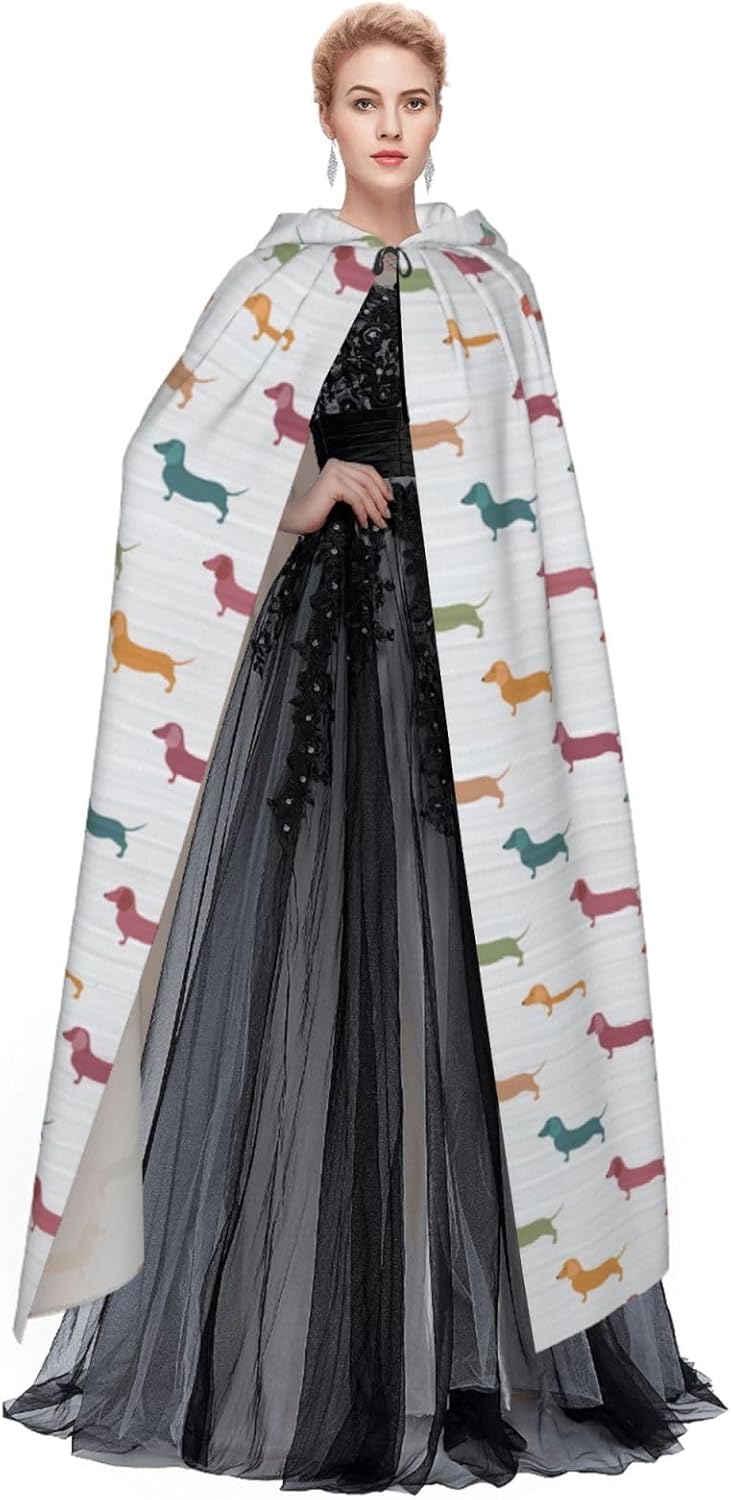 Mantello lungo con cappuccio con stampa di cani bassotto con cappuccio, per Natale, Halloween, feste a tema, giochi di ruolo, Nero, taglia unica