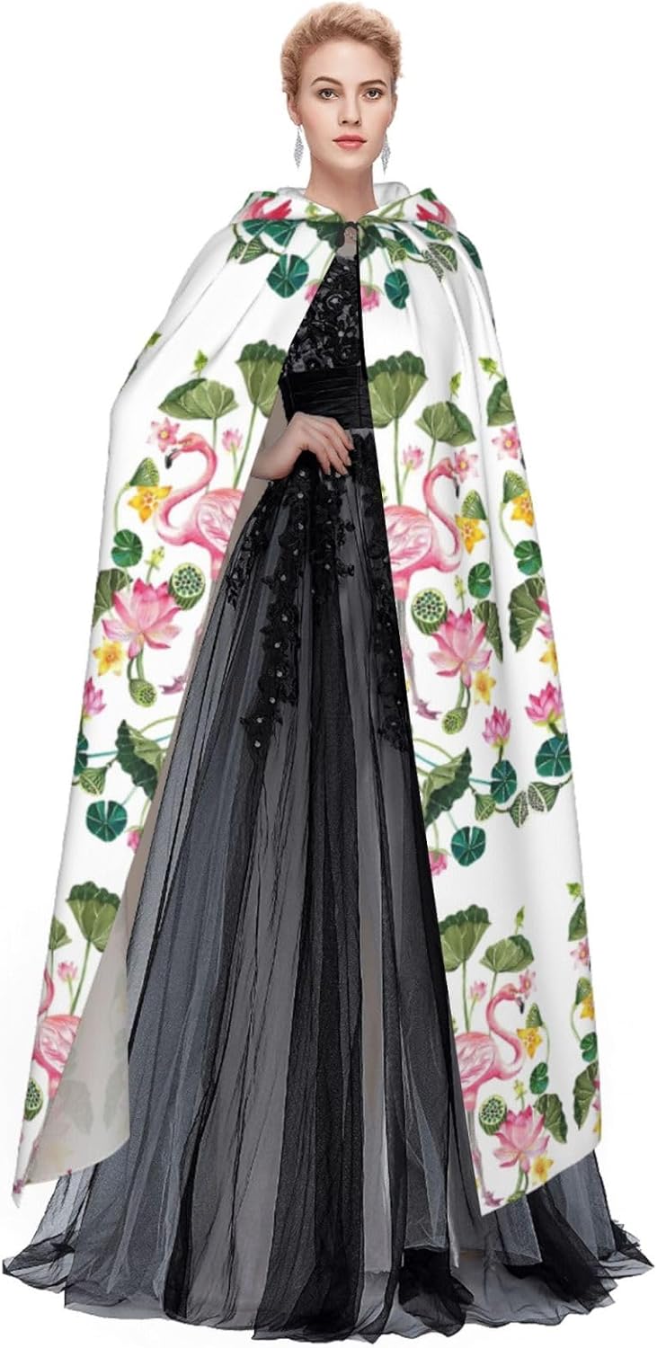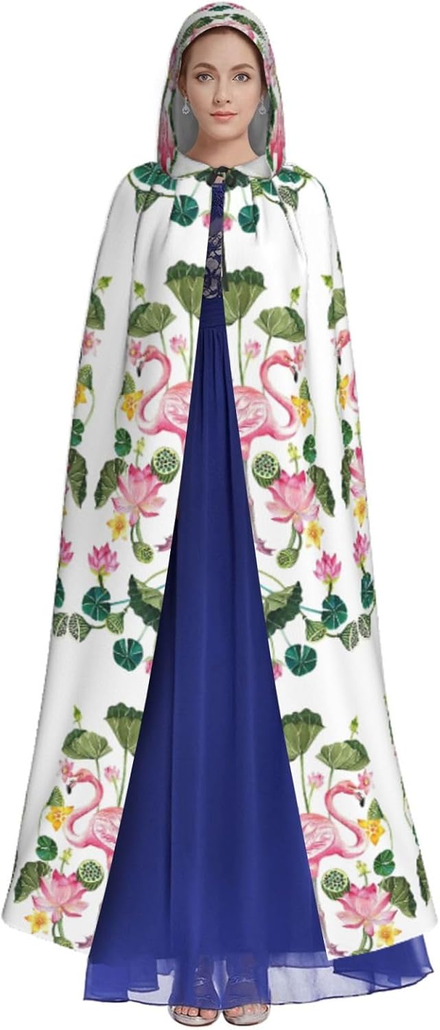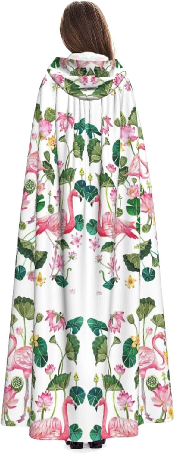 Mantello lungo con cappuccio con stampa di fenicottero con foglie rotonde per adulti, mantello lungo con cappuccio, costume di Halloween per feste a tema giochi di ruolo