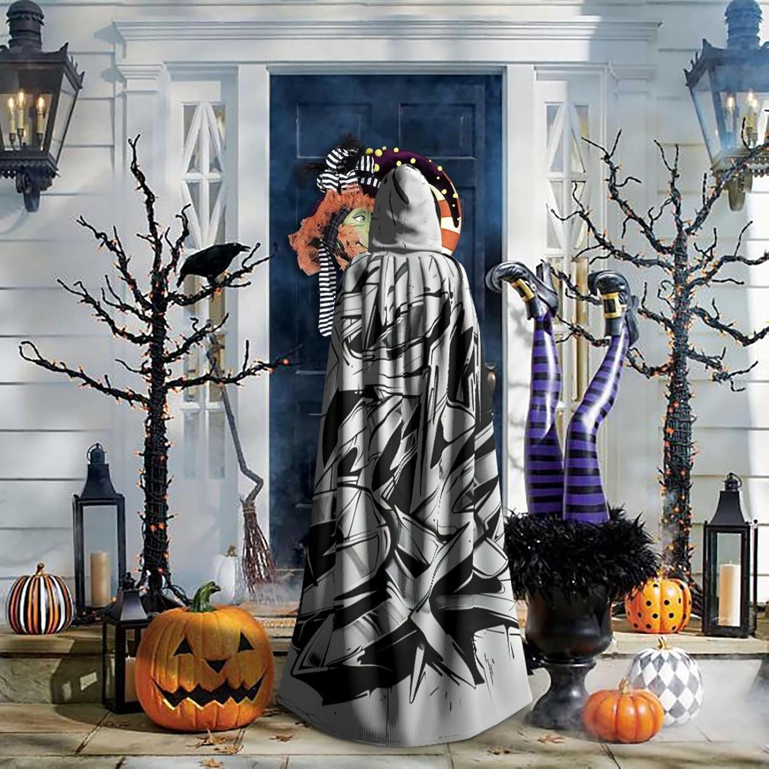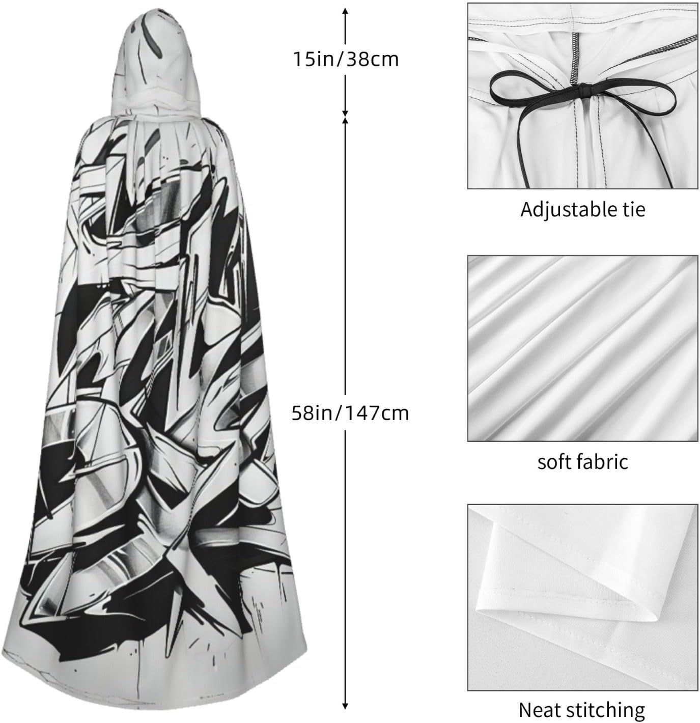 Mantello lungo con cappuccio con stampa di graffiti, mantello lungo per adulti, costume di Halloween per feste a tema e giochi di ruolo