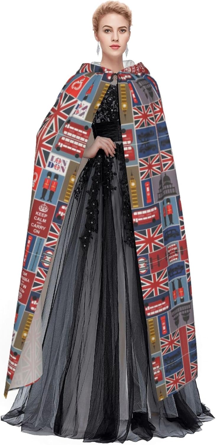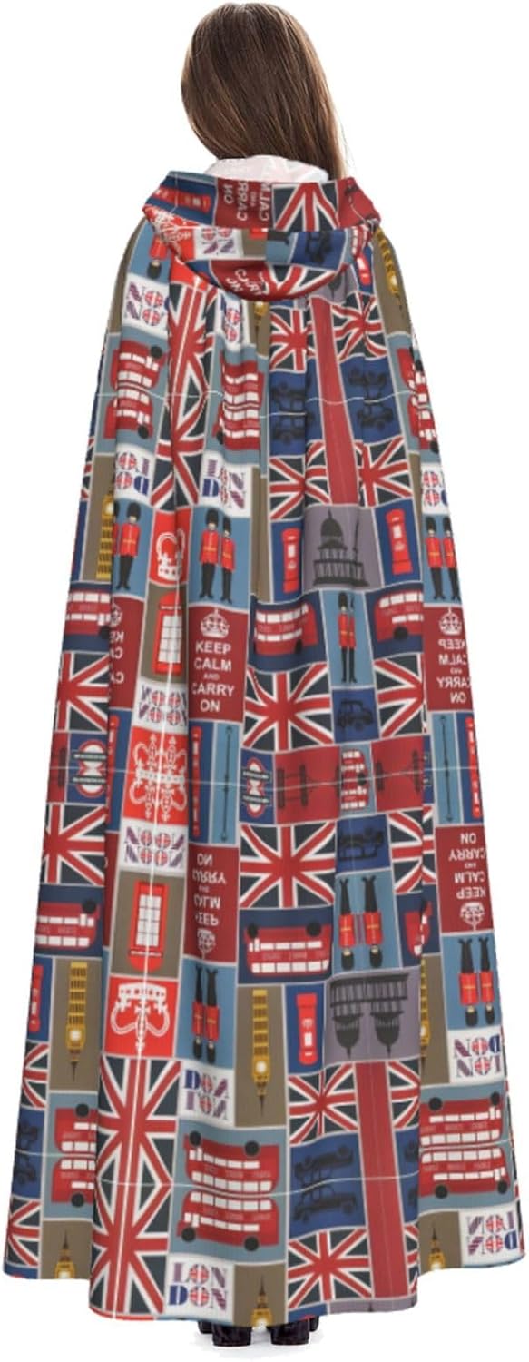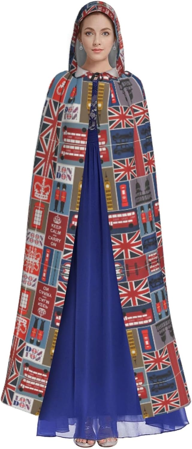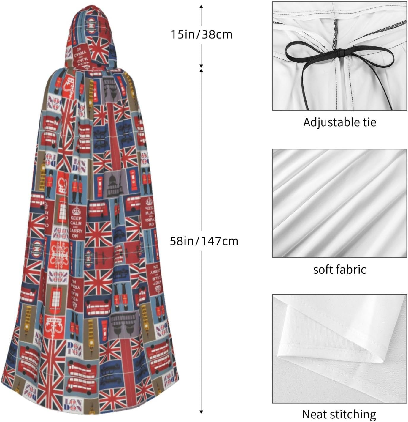 Mantello lungo con cappuccio con stampa di simboli dell'Inghilterra, mantello lungo per adulti, costume di Halloween per feste a tema e giochi di ruolo