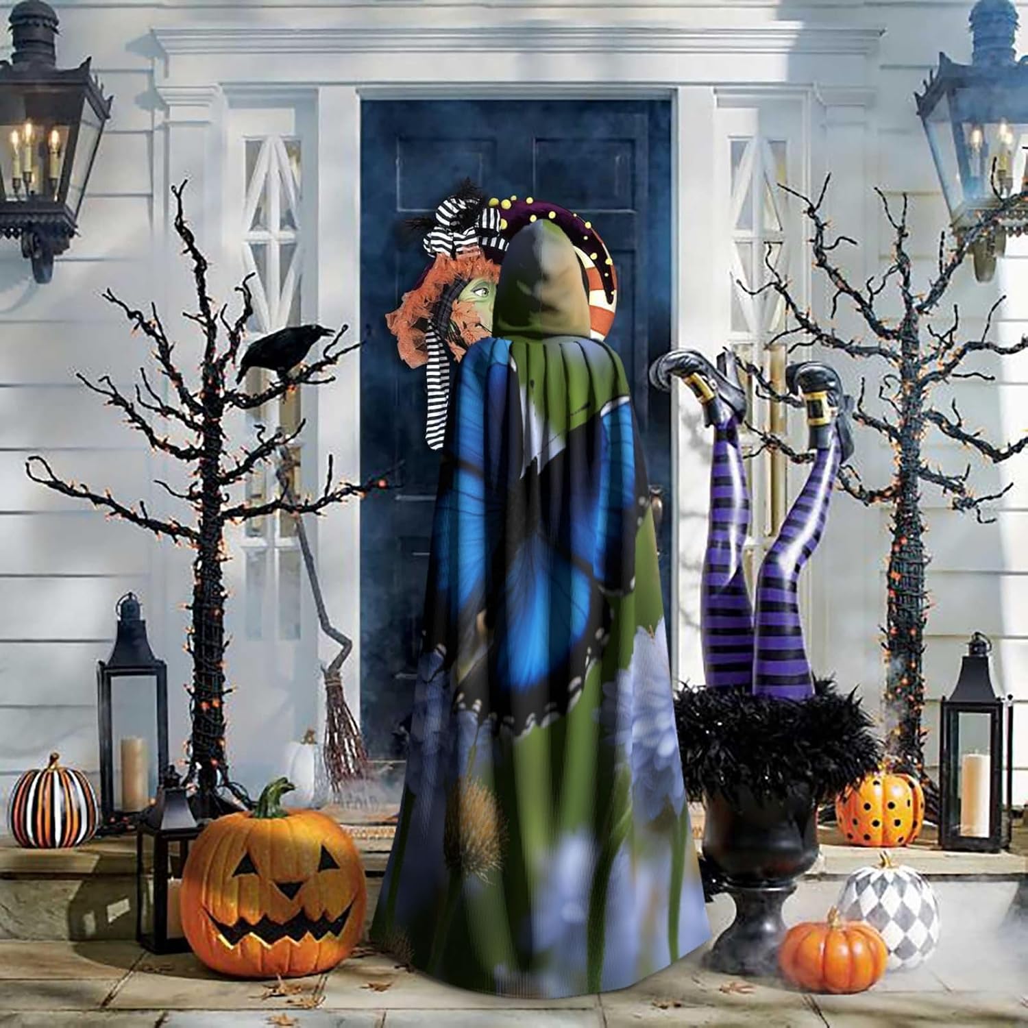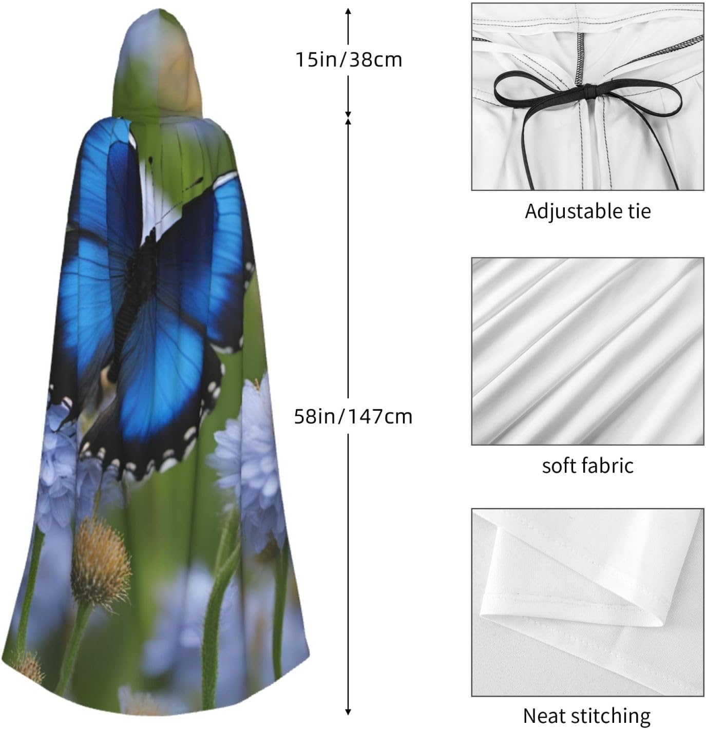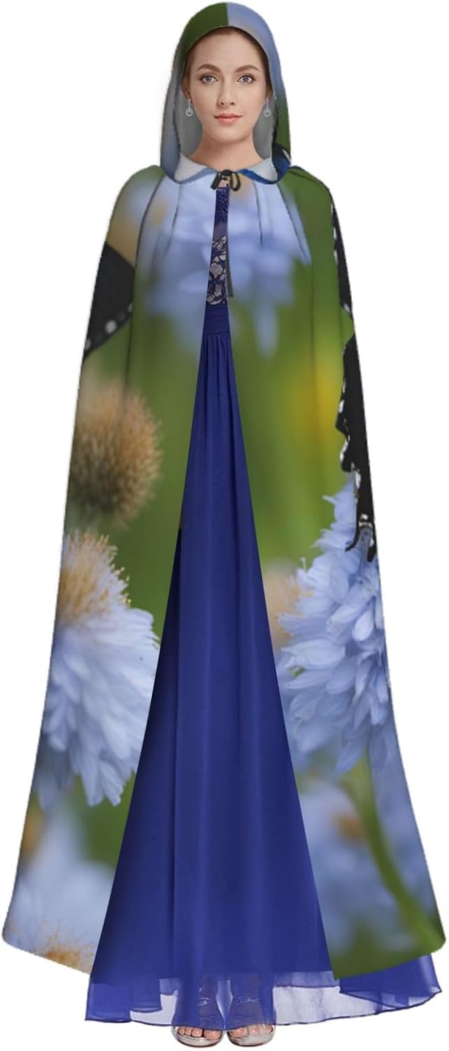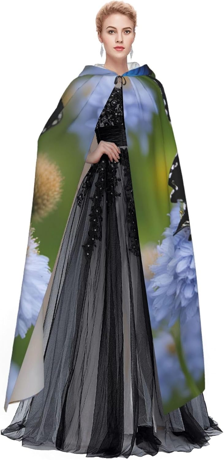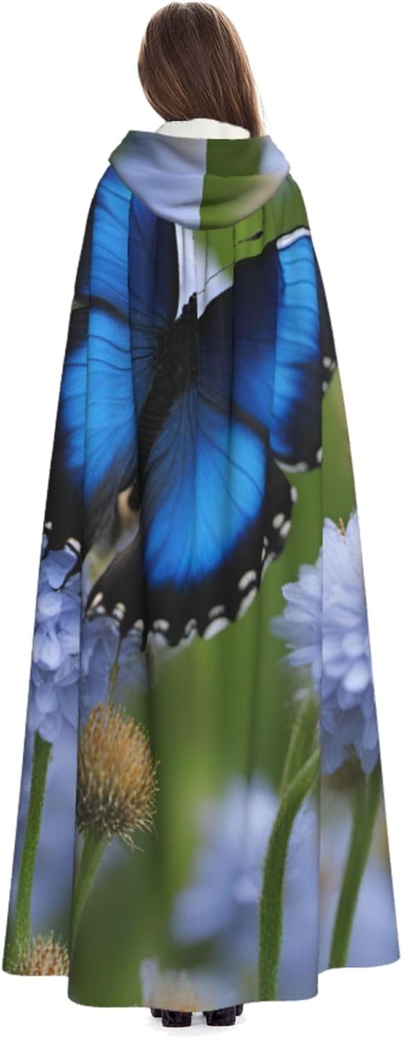 mantello lungo con cappuccio con stampa farfalla blu per adulti costume di Halloween per feste a tema giochi di ruolo