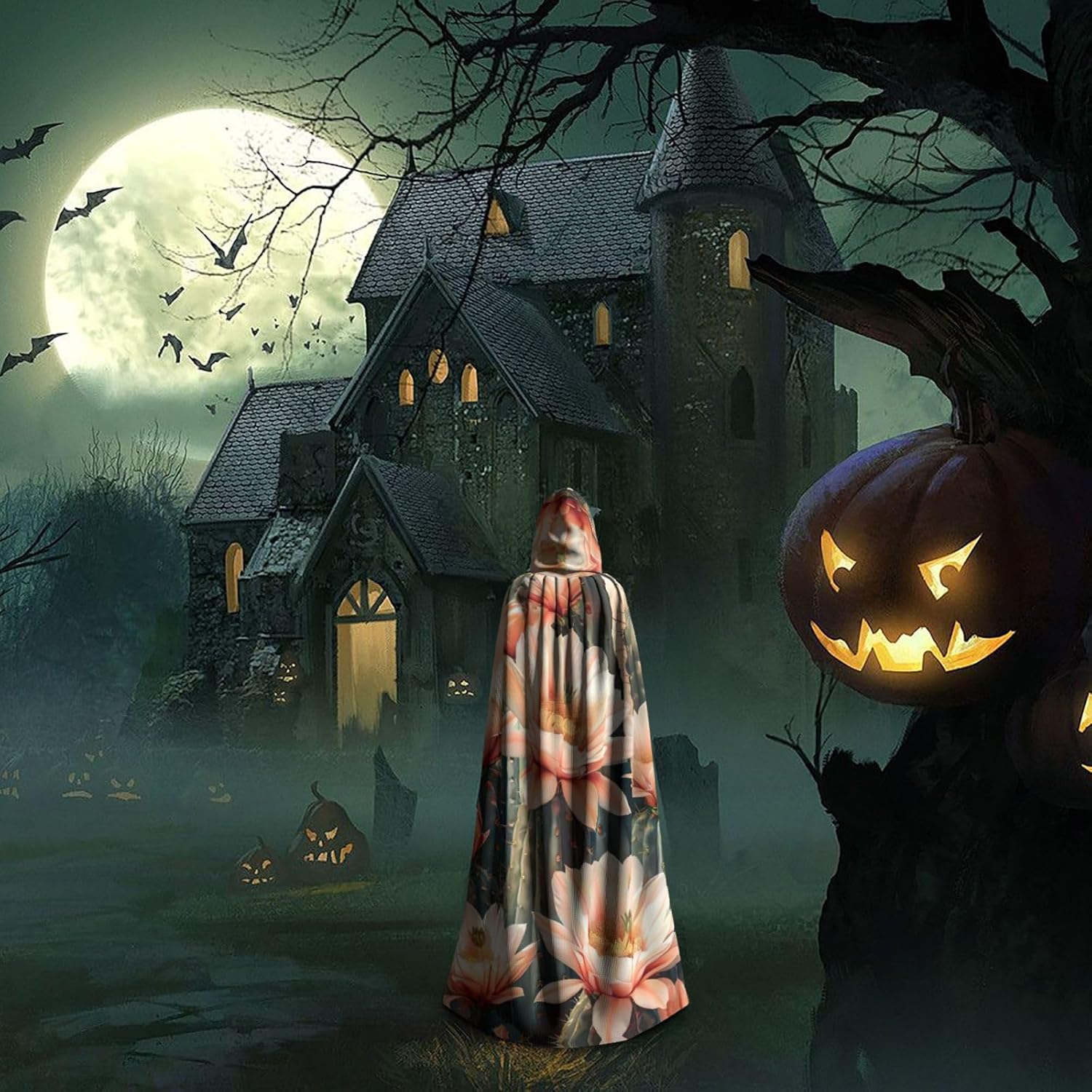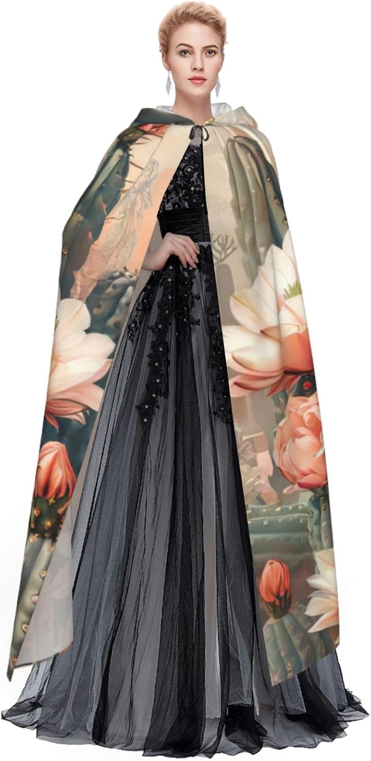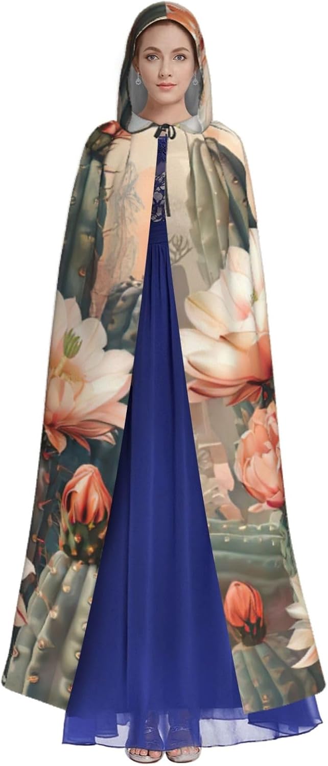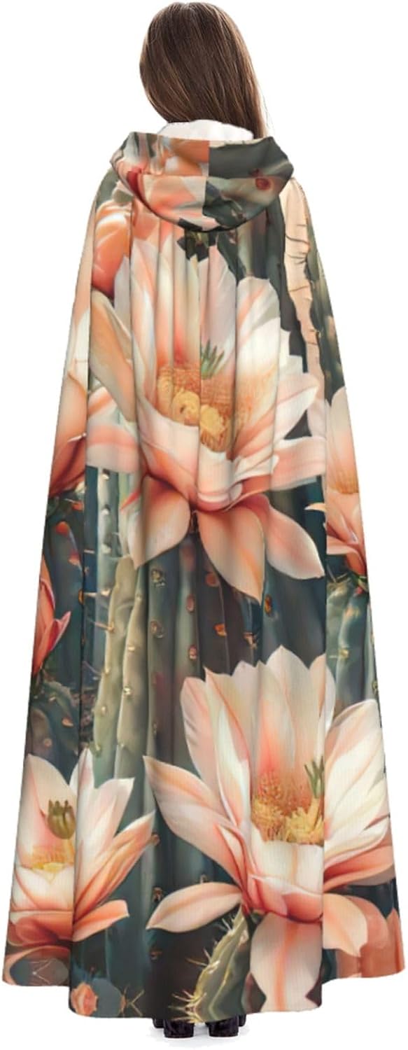 Mantello lungo con cappuccio con stampa floreale con cactus, mantello lungo per adulti, costume di Halloween per feste a tema e giochi di ruolo