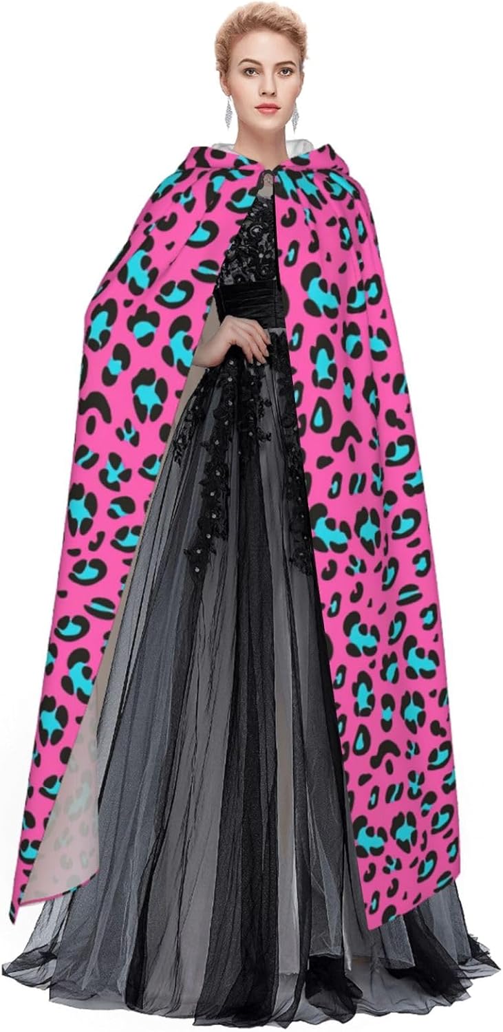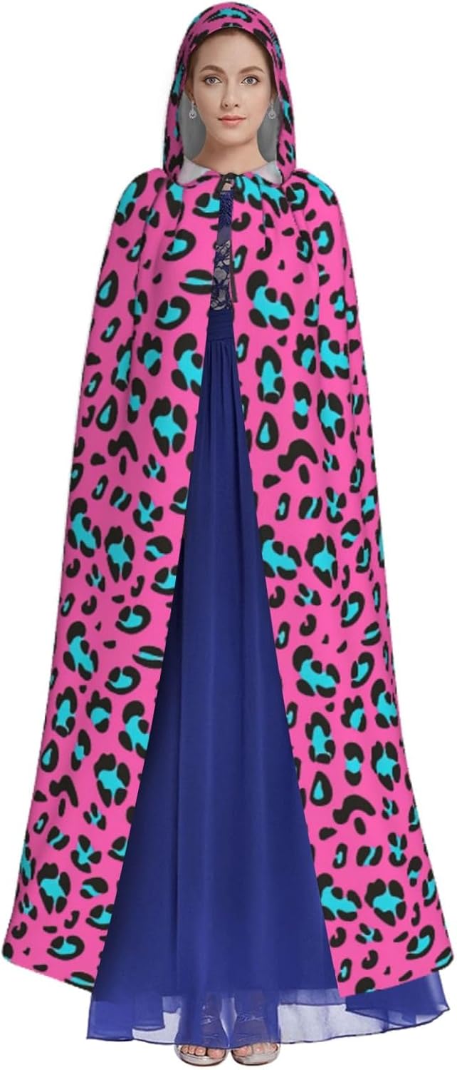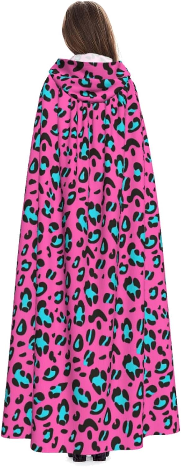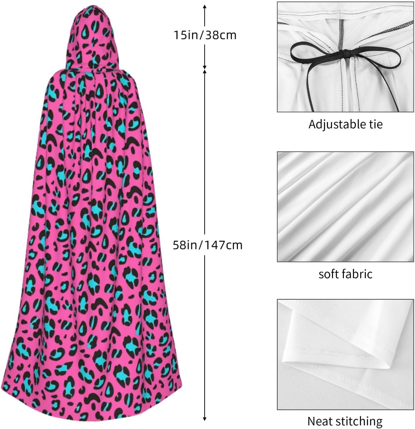 Mantello lungo con cappuccio con stampa leopardata per adulti, per Natale, Halloween, feste a tema, giochi di ruolo