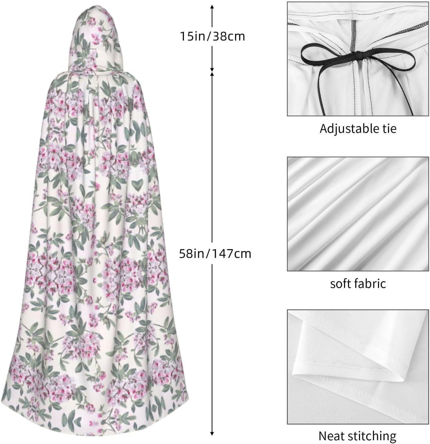 Un mantello lungo con cappuccio molto morbido e confortevole che è facile da indossare e togliere. Questo mantello non causerà alcun disagio alla pelle, è leggero, facile da piegare e trasportare mantello neutro con cappuccio con mantello super grande, senza cerniera e comodo mantello con cappuccio per Halloween. Questo mantello con cappuccio è a lunghezza intera design unisex generalmente utilizzato sia per donne che per uomini.