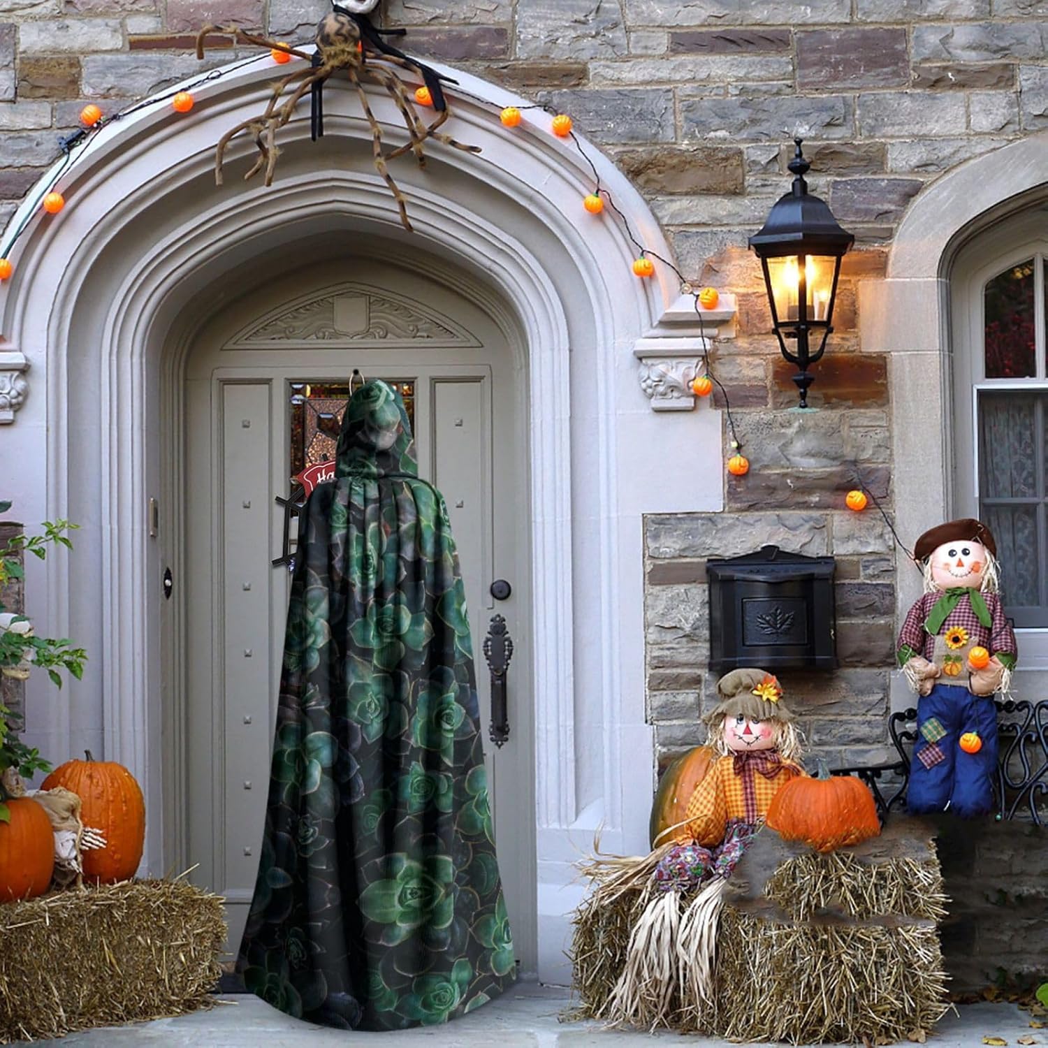Mantello lungo con cappuccio verde con stampa grassa per adulti, mantello lungo con cappuccio, costume di Halloween per feste a tema e giochi di ruolo