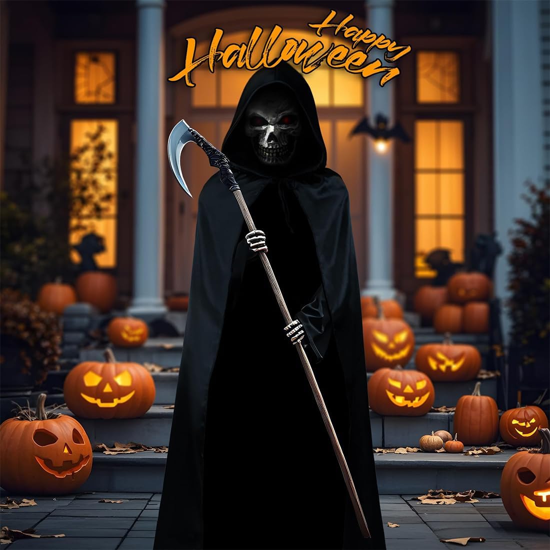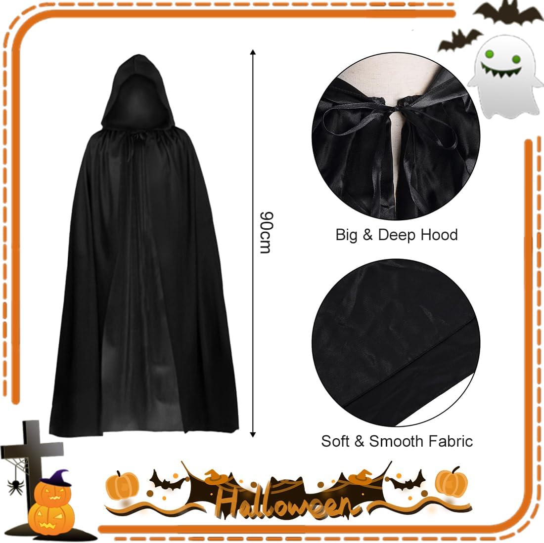 Design classico: design con cappuccio monostrato completamente nero, lungo 90 cm, semplice ma misterioso, si adatta perfettamente all'immagine dei personaggi di Halloween come la Morte e i maghi, creando immediatamente un'atmosfera terrificante e misteriosa. Materiale di alta qualità: realizzato in tessuto leggero e resistente, è morbido al tatto, comodo da indossare, non si stropiccia e non si deforma facilmente e può mantenere il suo bell'aspetto e la sua consistenza per lungo tempo. Facile da indossare: il modello con cappuccio è facile da indossare e non richiede particolari abilità di vestizione. Si indossa facilmente e fa risparmiare tempo. Scenari applicabili: Adatto per feste di Halloween, feste a tema, balli in maschera, sfilate di strada e altre occasioni. Abbinato al trucco e agli oggetti di scena corrispondenti, puoi integrarti rapidamente nell'atmosfera festiva. Proprietà versatili: può essere utilizzato non solo per travestimenti da festival, ma anche come oggetto di scena per cosplay o utilizzato in alcune performance teatrali e creazioni fotografiche per mostrare uno stile diverso.