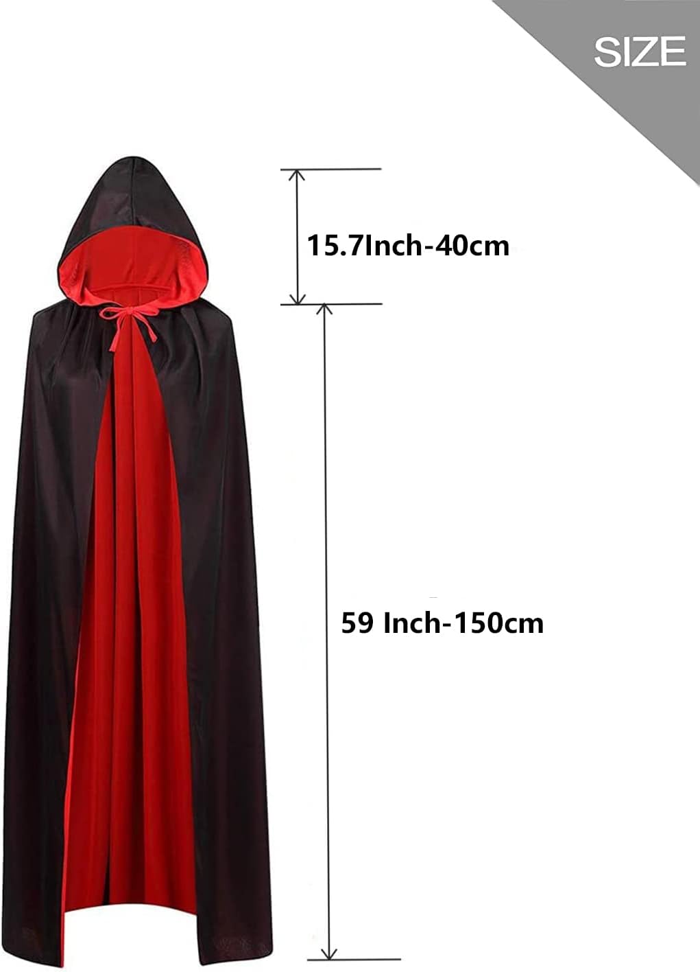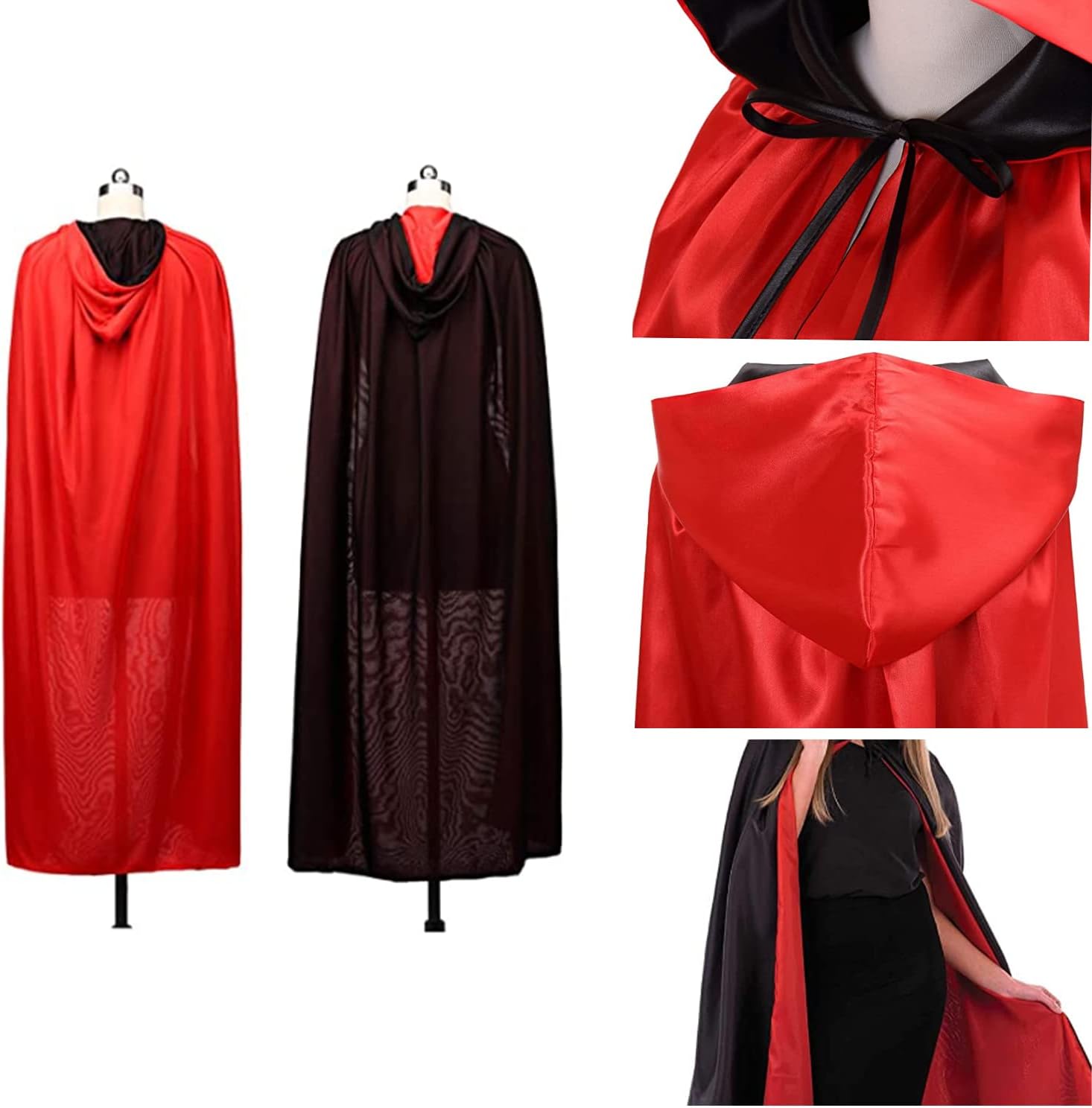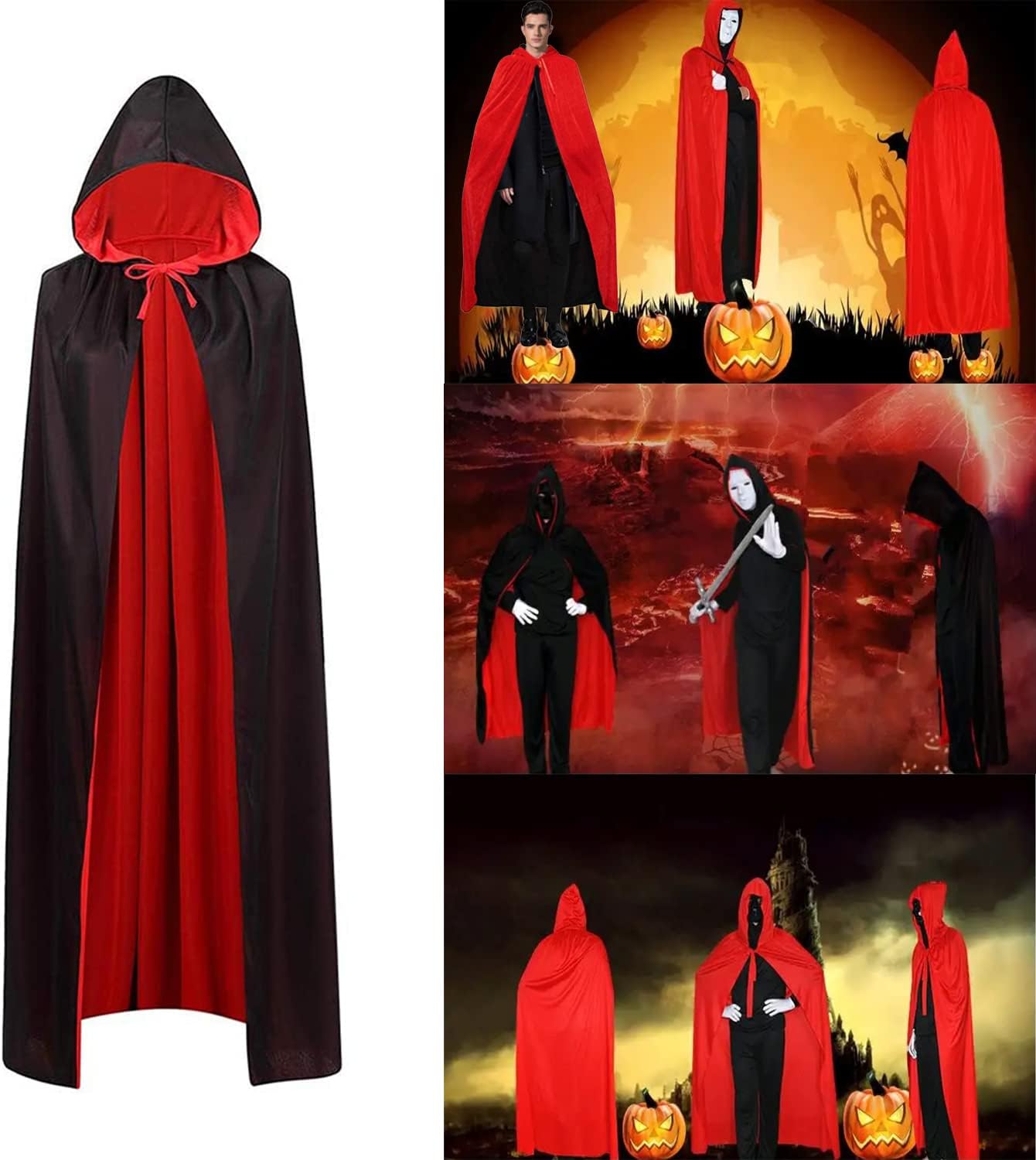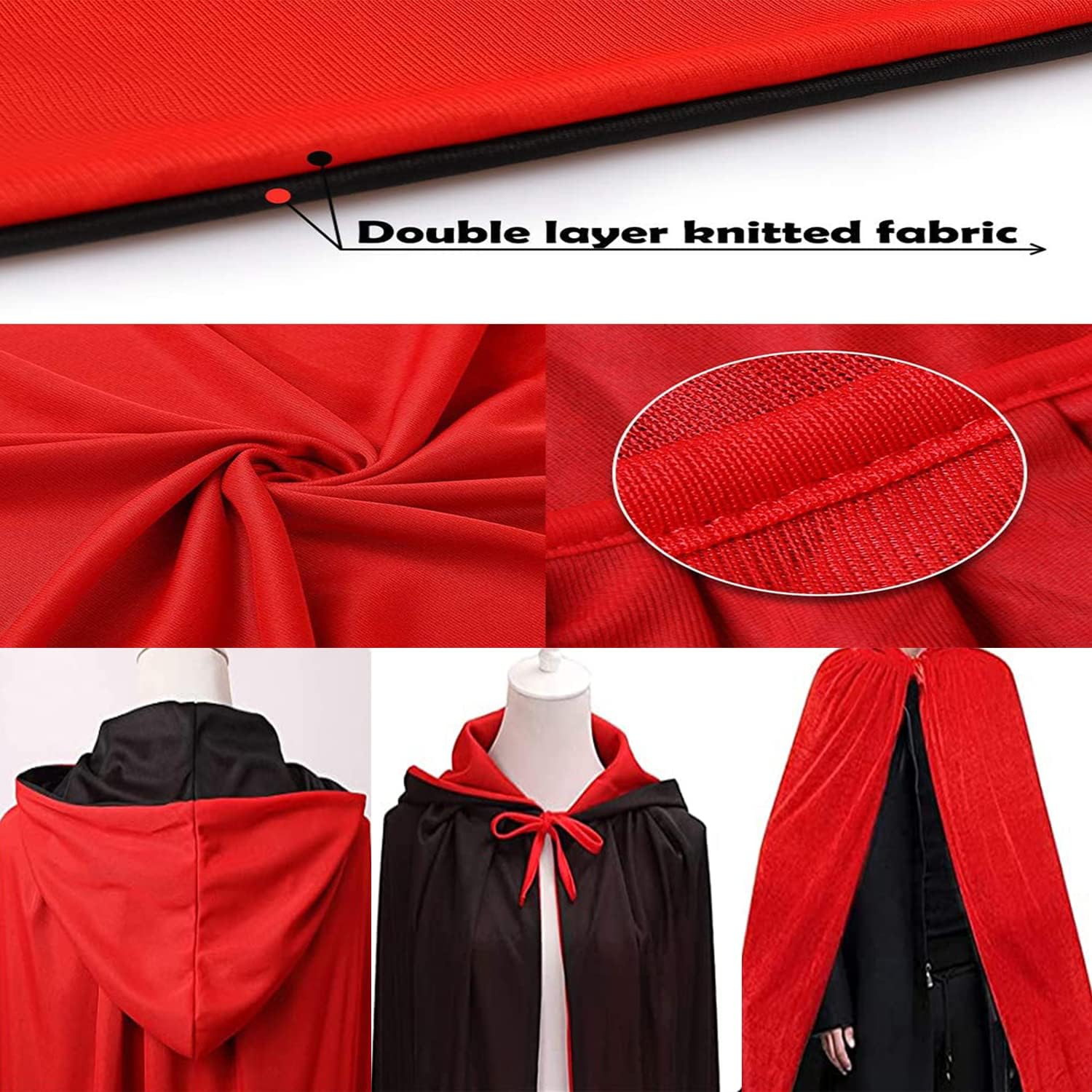 【Mantello double face. Il mantello con cappuccio di Halloween è nero, lo strato interno è rosso, puoi indossare il mantello capovolto, ti porterà un'esperienza diversa. Materiale: realizzato in tessuto a maglia, poliestere, di colore brillante, morbido e traspirante, cappotto con corda, può essere legato intorno al collo per evitare cadute, il tessuto a doppio strato rosso e nero di alta qualità è morbido e confortevole. Unisex: la lunghezza del mantello da vampiro è di circa 150 cm, adatta a persone di età compresa tra 160 cm e 180 cm, adatta per adulti e adolescenti. Occasioni applicabili: il mantello double face può essere utilizzato per feste di trucco di Halloween, cosplay, spettacoli sul palco, festival di fantasmi, fotografia, ecc. Regalo unico: indossare un mantello da vampiro per andare a una festa di carnevale di Halloween può attirare più attenzione e diventare il personaggio più unico e abbagliante della festa, che aggiungerà un'atmosfera gioiosa alla festa.