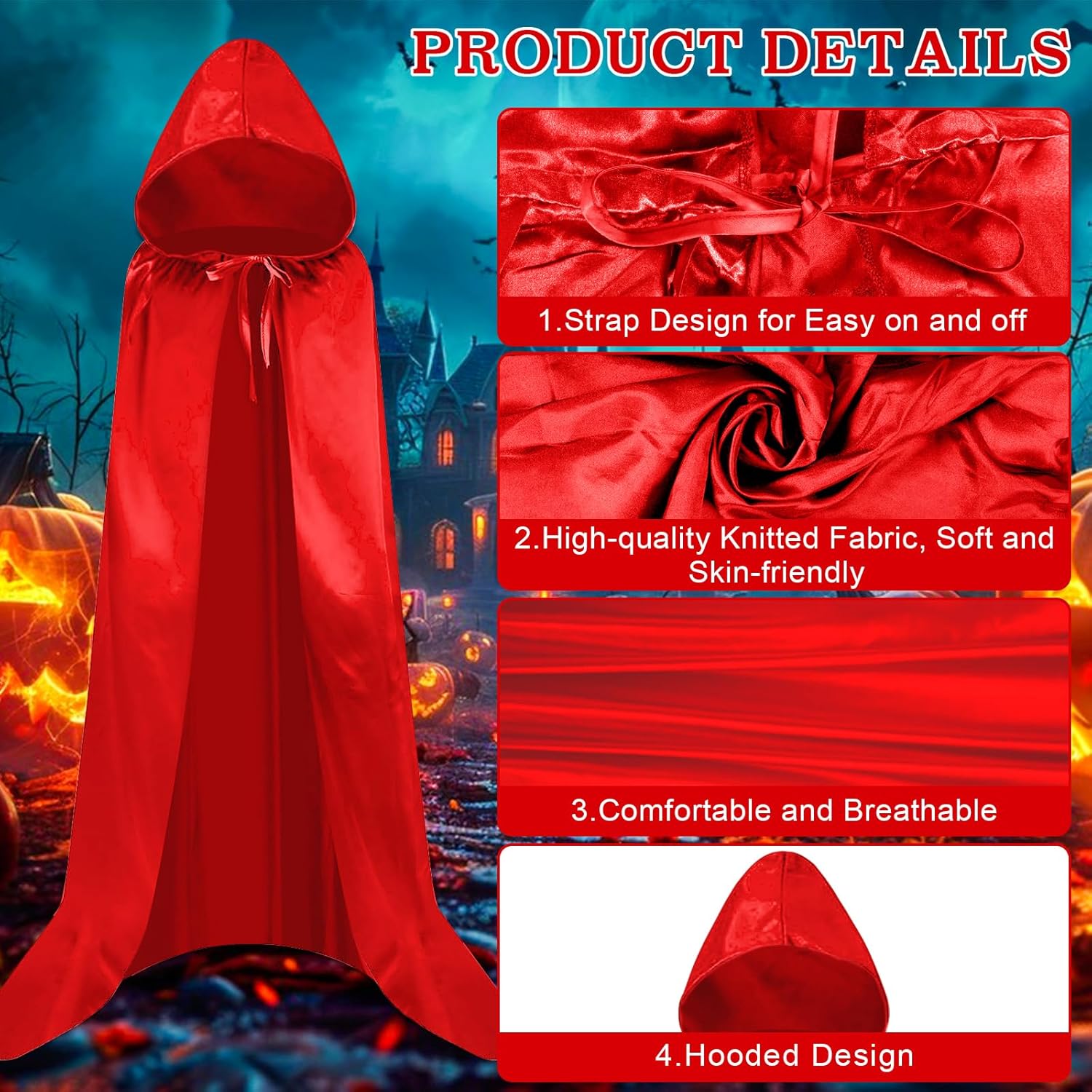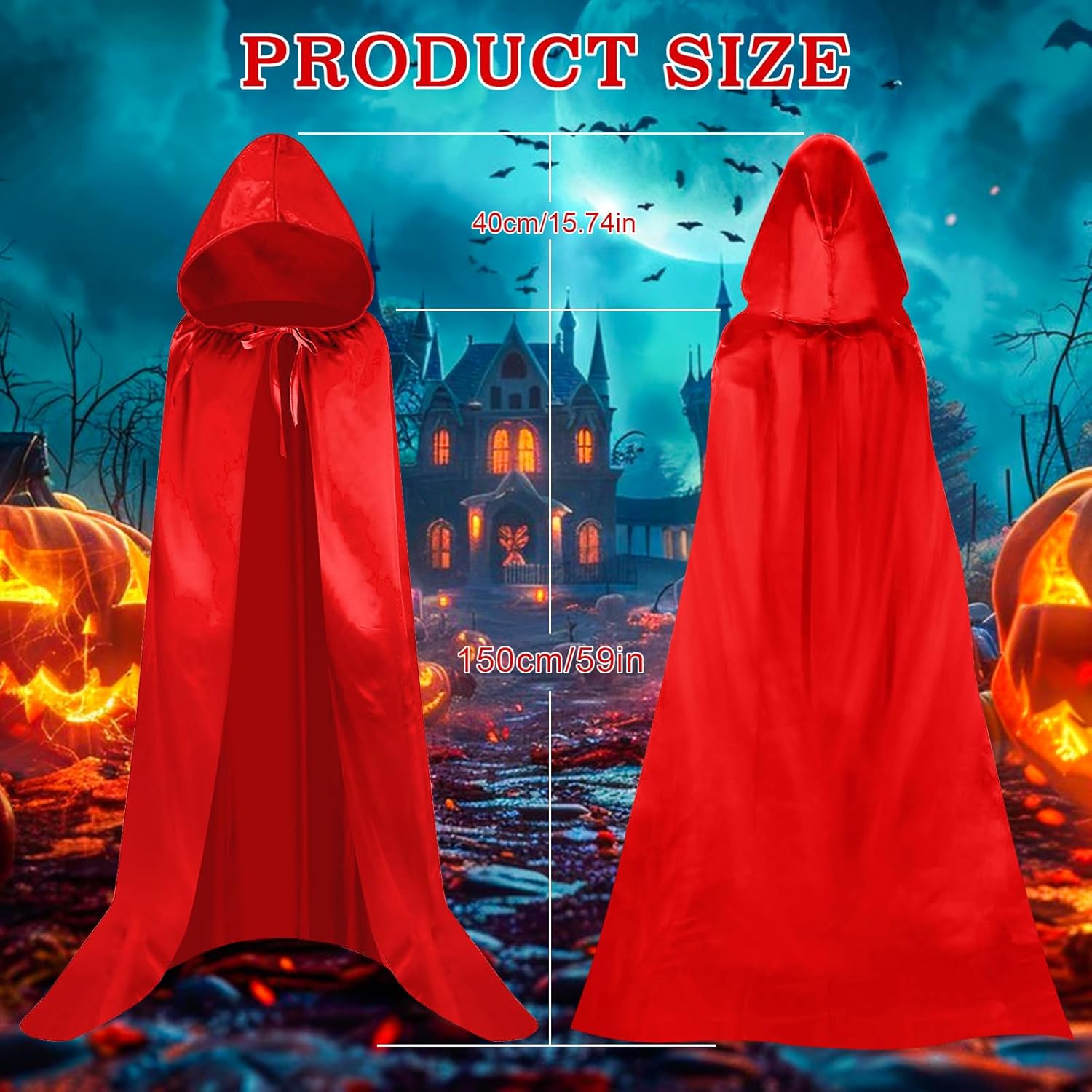 【Mantello con cappuccio mistico】:Con l'aiuto del cappuccio del mantello del demone, il viso può essere sottilmente coperto, creando un'atmosfera misteriosa. Aggiunge un aspetto drammatico al gioco di ruolo. 【Dimensione ideale】:La lunghezza di questo mantello da demone è di circa 150 cm e l'altezza del cappello è di circa 40 cm (misurazione manuale, c'è un leggero errore). La dimensione è perfetta per qualcuno 170-190 cm. 【Disegno con coulisse】:La corda attaccata al mantello del demone. Ciò garantisce che si adatti saldamente e non scivoli. Il cappuccio e il colletto sono abbastanza spaziosi da offrirti un comfort extra soddisfacendo le esigenze del cosplay. 【Materiali di alta qualità】:Realizzato in nastro di raso di alta qualità, il materiale è morbido e confortevole, delicato sulla pelle e non provoca fastidio alla pelle. Squisita tecnologia di lavorazione, non si sbiadirà. (lavabile in lavatrice o lavabile a mano) 【Adatto a molte occasioni】:Questo mantello da demone non è solo per Halloween. Anche il costume perfetto per Natale, cosplay, mascherata, spettacoli teatrali e spettacoli teatrali.