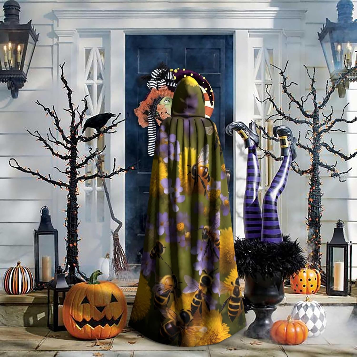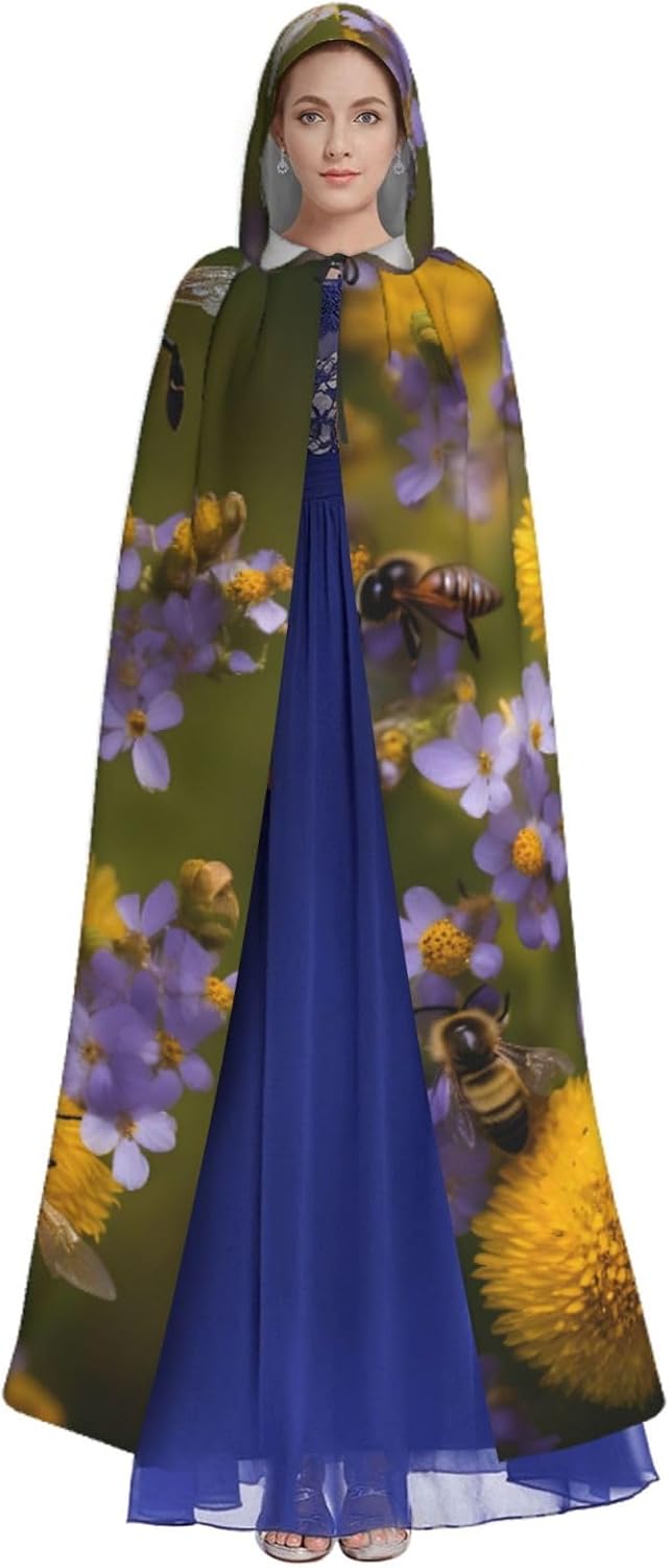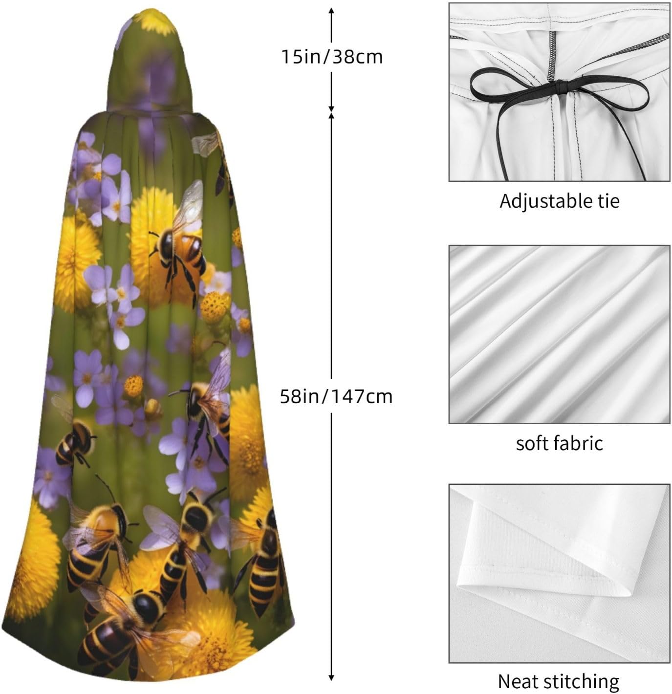 Il mantello con cappuccio per Halloween è realizzato con tessuto in poliestere morbido anche sulla pelle, prevenendo qualsiasi irritazione. Il mantello presenta un ampio cappuccio e uno stile annodato senza cerniere per un design sofisticato ed elegante. Con la sua dimensione universale, offre una copertura completa, adatta a tutti, assicurandoti di distinguerti tra la folla. Questo mantello rurale con stampa di api selvatiche non è solo per Halloween; è abbastanza versatile per cosplay, spettacoli teatrali, balli in maschera, feste a tema e molto altro ancora.