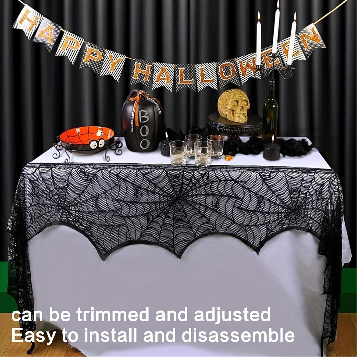 Adatto per decorare feste di Halloween, balli e altri luoghi SCIARPA DA UOMO A TEMA HALLOWEEN con sciarpa nera a ragnatela sul mantello per aggiungere una decorazione spaventosa Ampiamente usata per decorare la sciarpa sul mantello e creare un'atmosfera di Halloween Adatto a diverse dimensioni, può tagliare e regolare le dimensioni Componente facile da pulire; Facile da installare e rimuovere, comodo da riporre