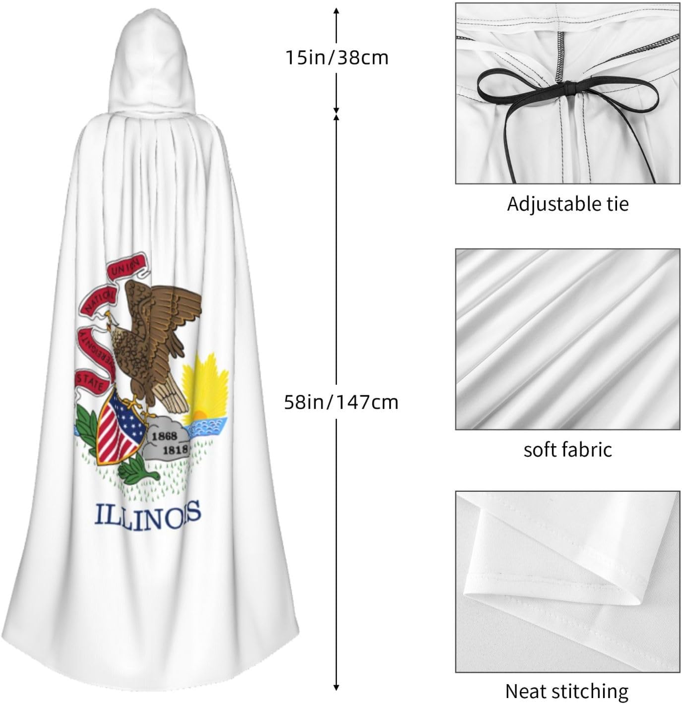 Mantello versatile con cappuccio con stampa bandiera dello stato dell'Illinois, mantello da strega e mantello con cappuccio per adulti