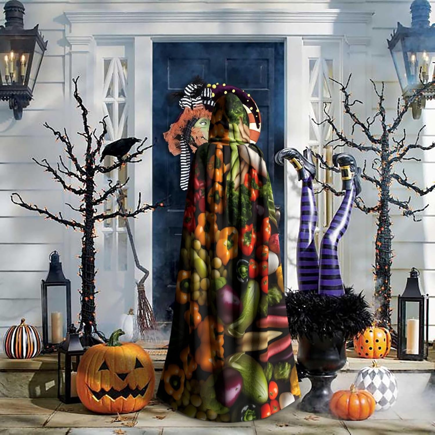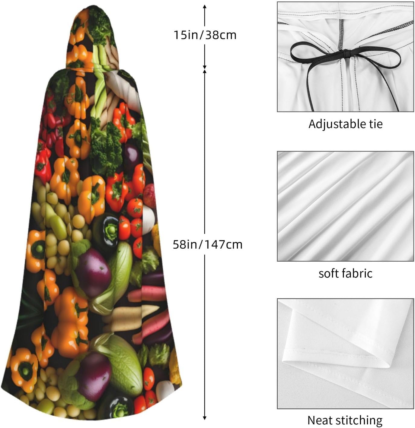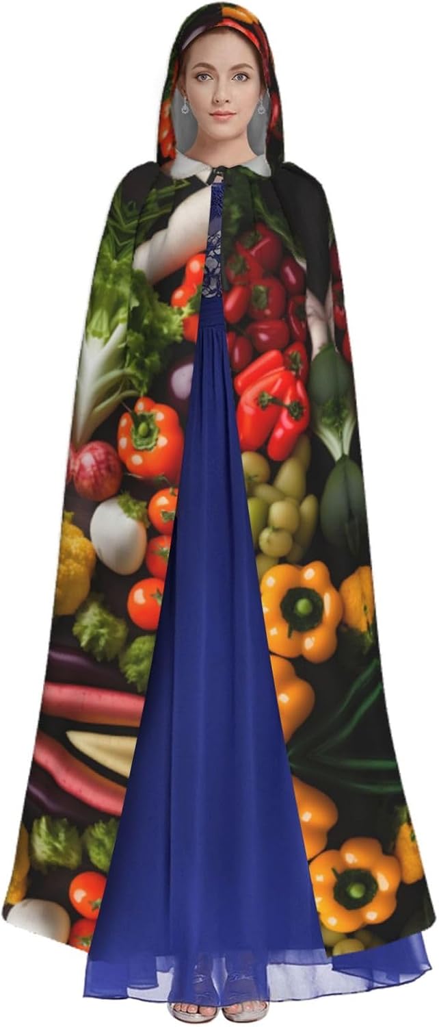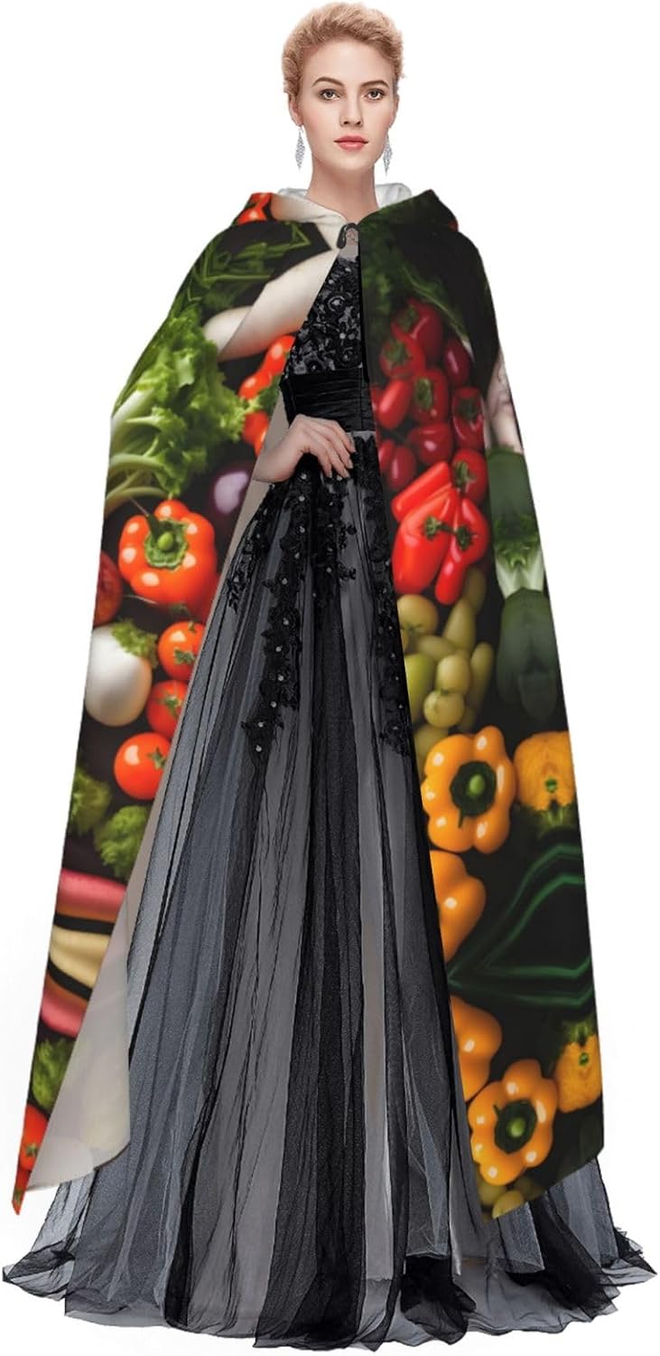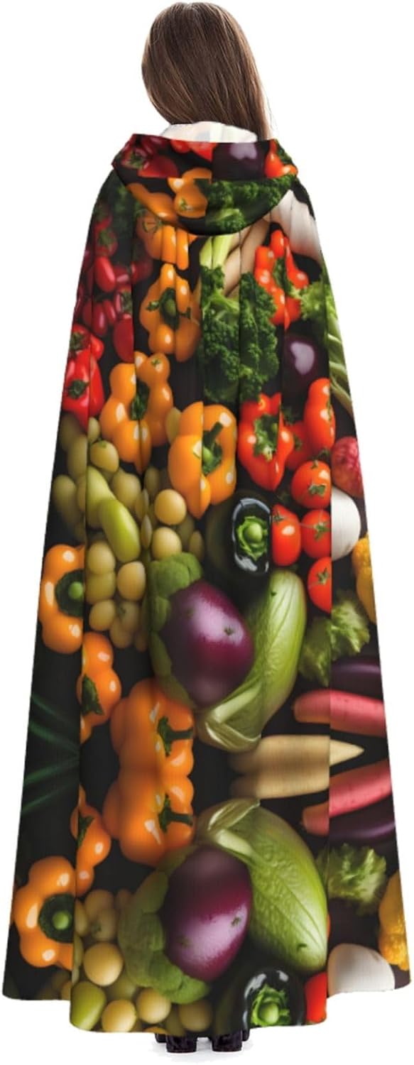 Mantello versatile con cappuccio, con stampa di frutta e verdura fresca, per Halloween, mantello con cappuccio, mantello da strega e mantello con cappuccio per adulti