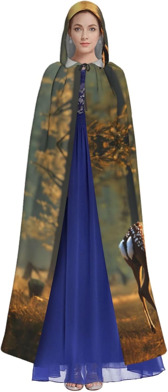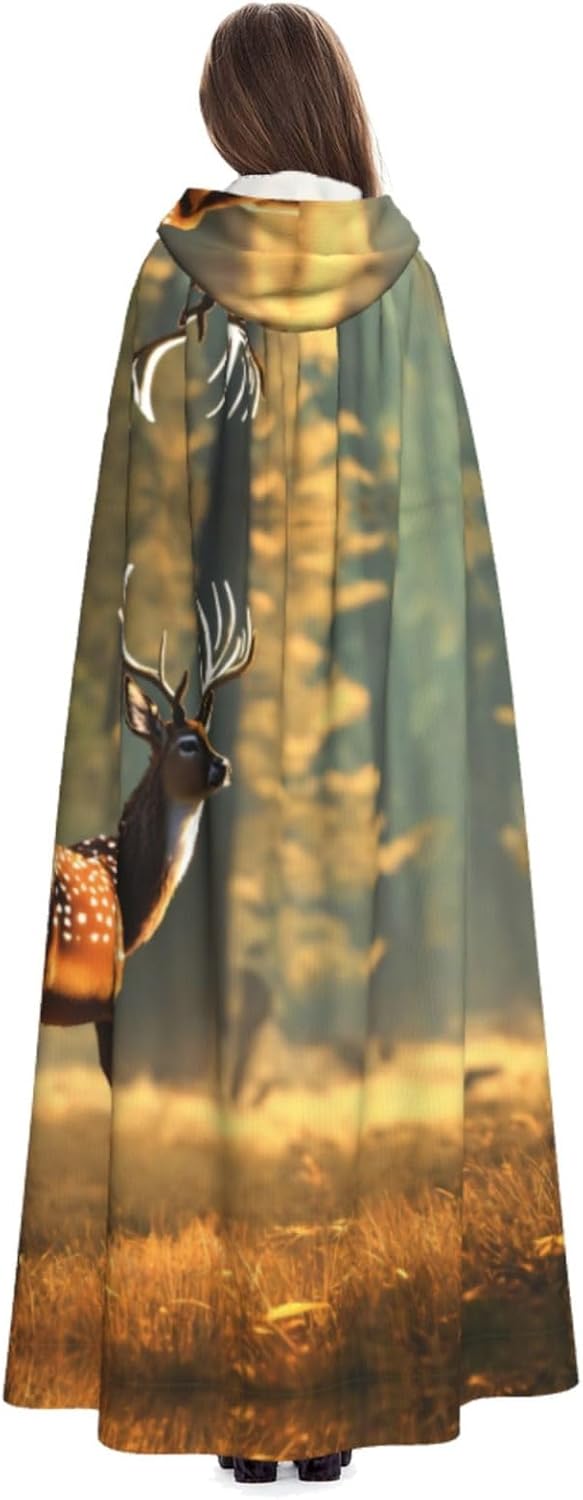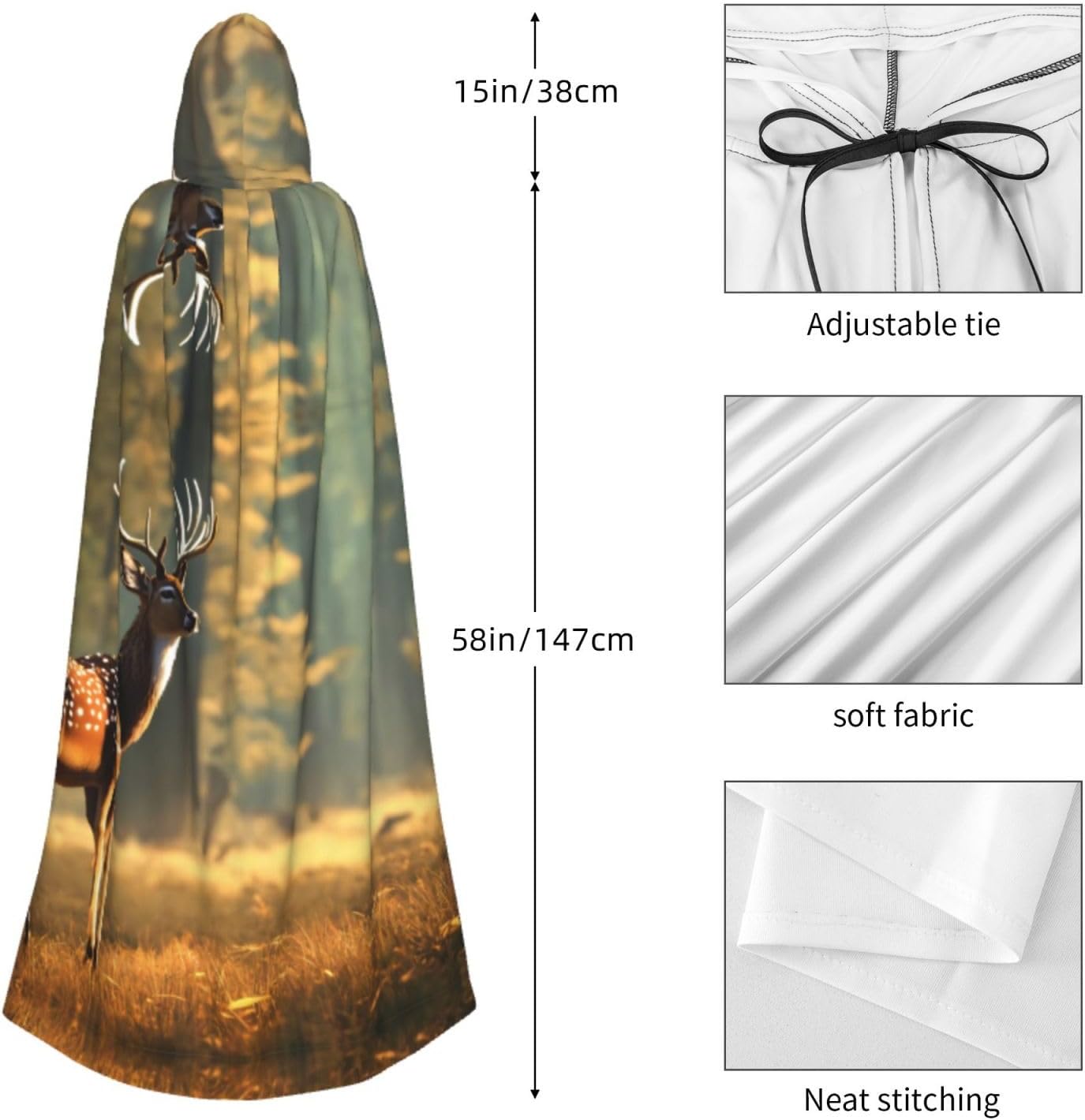 Realizzato in poliestere, questo mantello con stampa cervo con cappuccio garantisce longevità e comfort. Le sue dimensioni ottimali assicurano una copertura completa per tutte le età, facendoti risaltare in qualsiasi evento. Che tu sia diretto per Halloween, un evento cosplay, un costume da palcoscenico, una festa in maschera, una festa a tema, un ballo o una convention di fumetti, questo mantello è una scelta ideale. Il suo design unico, completo di un grande cappuccio e cravatte collare. Inoltre, puoi dire addio ai metodi di pulizia complicati. Questo mantello con cappuccio con stampa cervo è lavabile in lavatrice e a mano, offrendo una cura senza sforzo. Esci con stile e comfort con il nostro mantello con cappuccio, il tuo compagno per tutti gli eventi e le occasioni.