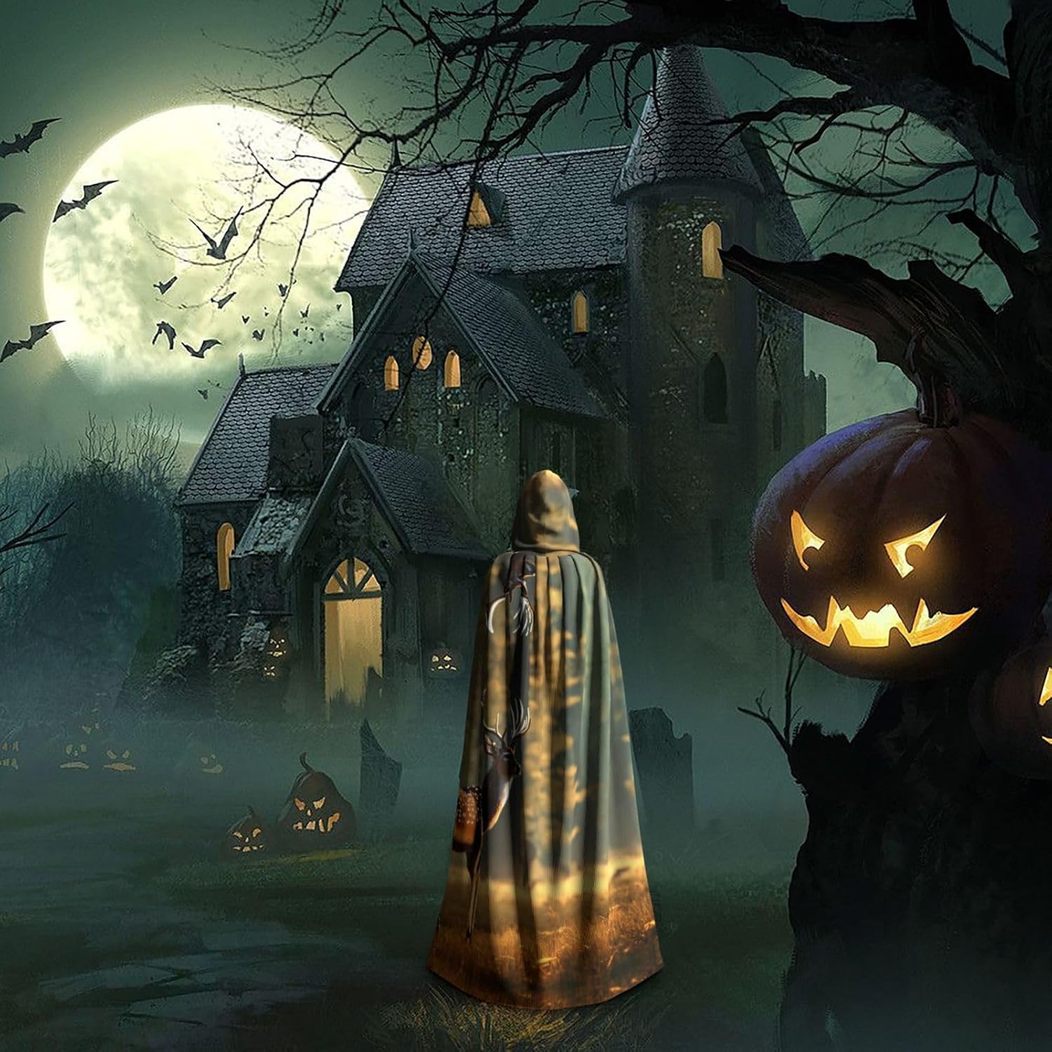 Mantello versatile con cappuccio, stampa cervo, per Halloween, con cappuccio, mantello da strega e mantello con cappuccio per adulti