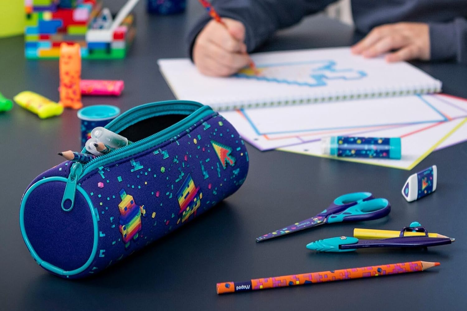 DIVERTENTE E PRATICO: Vera stella dei kit scolastici, la bussola Study Pixel Party convince i bambini grazie al suo design unico e ai suoi bellissimi colori bluastri. Estetica, questa bussola è particolarmente iper pratica per imparare a tracciare cerchi con precisione, dall'età di 6 anni. Basta far scorrere la matita nell'anello universale e stringere la vite per tracciare cerchi fantastici! COMPASSO METALLO SOLIDO: Grazie ai suoi rami in metallo, la bussola Study Pixel Party accompagna i bambini per molto (molto) a lungo. ERGONOMICA: La bussola è dotata di un massetto ergonomico, per tracciare cerchi in tutta comodità. Un uso delicato che consente ai bambini di disegnare forme geometriche senza farsi male alle mani. Collezione PIXEL PARTY: Con il suo arredamento retrò-futuristico, ispirato ai codici del gioco, questa linea di accessori per la scuola di qualità, affascinerà ragazze e ragazzi per un rientro a scuola colorato e pieno di creatività. Pixel Party a te per giocare! CAMBIARE IL MONDO CON LE SUE MANI: Maped ha innovato da oltre 75 anni affinché i bambini di tutto il mondo coltivino il loro immaginario, sviluppino le loro conoscenze, imparino e creino con le loro mani. Strumenti innovativi e forniture scolastiche sostenibili appositamente progettati per loro... Giorno dopo giorno, Maped consente ai bambini di cambiare il mondo con le loro mani!