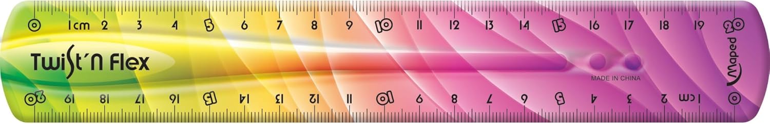 In materiale flessibile, infrangibile e divertente, Twist'n Flex si torce all'infinito! Attraente: motivi decorativi attraenti che valorizzano l'impatto visivo del righello! Bustina protettiva appendibile in scatola espositore decorata Interni decorati Doppia millimetratura