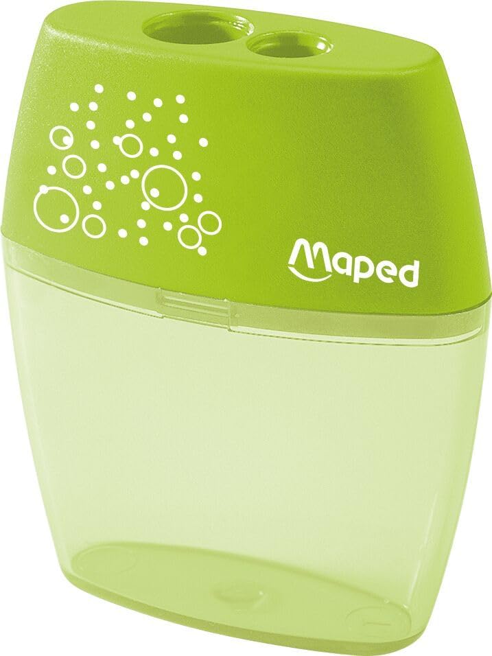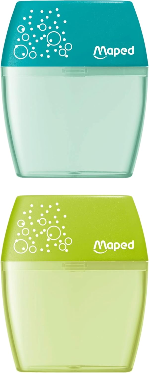 Temperamatite con serbatoio: questo temperamatite MAPED è dotato di una riserva per raccogliere i trucioli, consentendo di tagliare le matite in tutta pulizia e di mantenere un astuccio immacolato. Il serbatoio trasparente consente di tracciare il suo riempimento e svuotarlo al momento opportuno semplicemente slacciando la riserva. Grande capacità, non c'è bisogno di svuotare la riserva ogni 3 giri! Ergonomico ed efficace: il temperamatite shaker offre una presa facile per affilare le matite in tutta comodità. Grazie alla sua lama in acciaio inossidabile, la dimensione è facile e veloce e non danneggia la miniera. Sono sufficienti alcune dimensioni per ottenere una bella punta. Un ottimo strumento scolastico che taglia bene le miniere per realizzare disegni sottili! Gamma shaker: una storia di successo firmata MAPED! rinomata per la sua qualità e colori appariscenti, la gamma shaker offre temperamatite di qualità, moderni e imperdibili. Sono disponibili in 2 formati: con 1 foro per matite di diametro standard (8 mm) o con 2 fori di diversi diametri. Design divertente: questi temperamatite blu e verde porteranno colore nell'astuccio degli scolari. Decorato con bolle d'argento, il temperamatite shaker presenta un design semplice e chic che piace a grandi e piccini. Ha due fori, uno per matite di diametro standard 8 mm, l'altro per matite jumbos di 11 mm di diametro. Il temperamatite è adatto per diversi formati di matita: triangolari, rotondi ed esagonali. MAPED : Fin dalla sua fondazione nel 1947, la società Maped (Manufacturing of Precision and Design) sostiene il suo sviluppo sul suo know-how industriale, cultura dell'innovazione e reattività per offrire ai suoi utenti soluzioni sempre più efficienti e sostenibili.