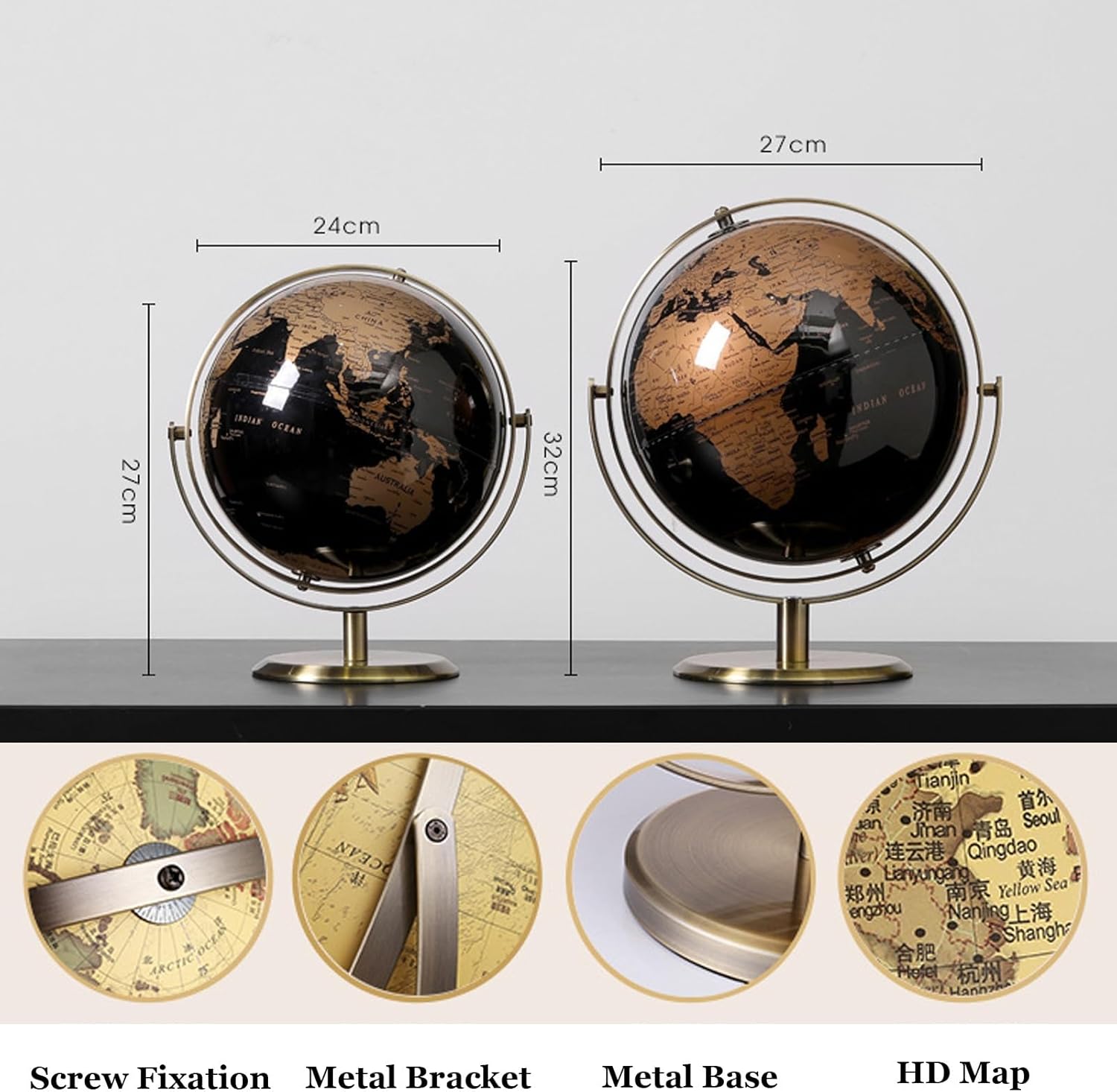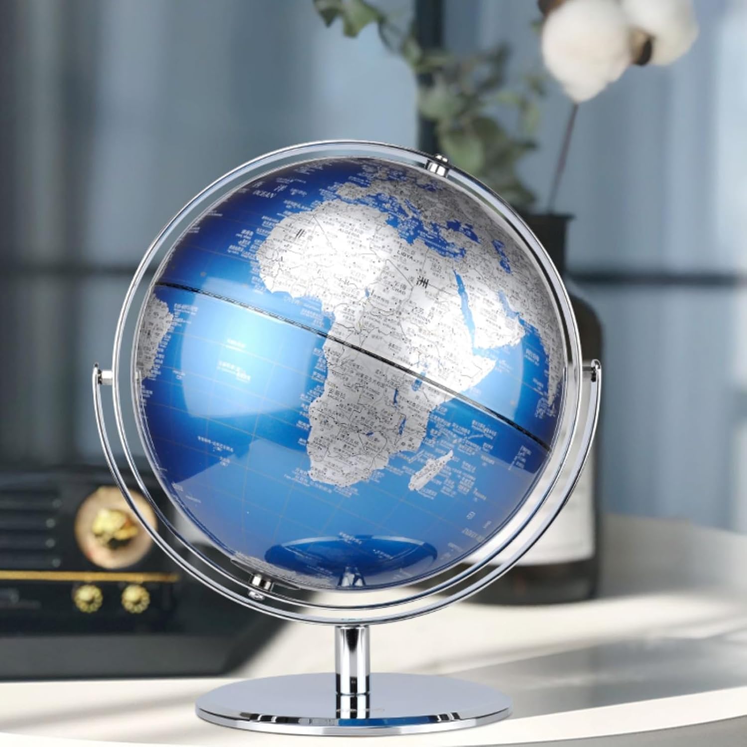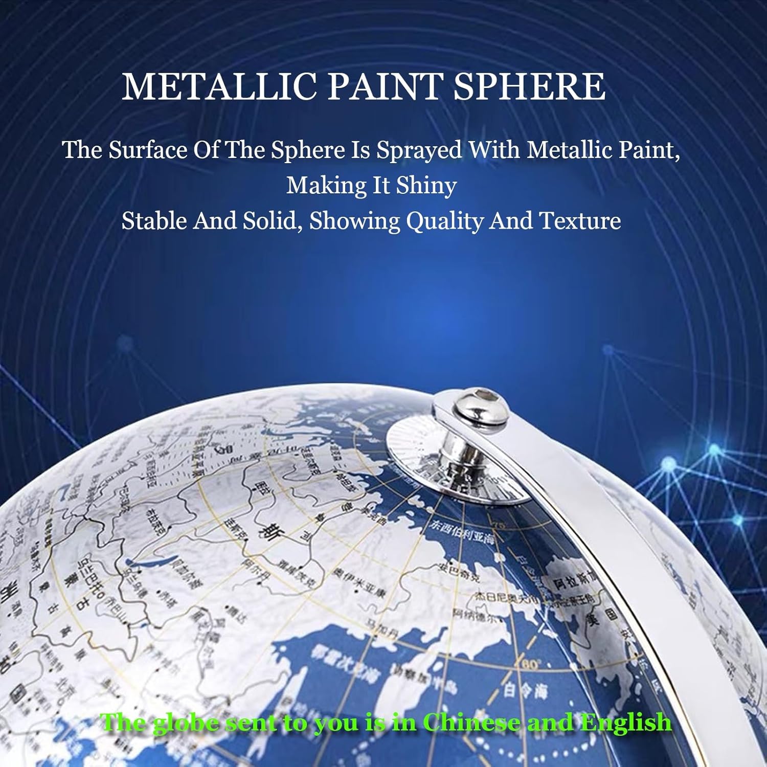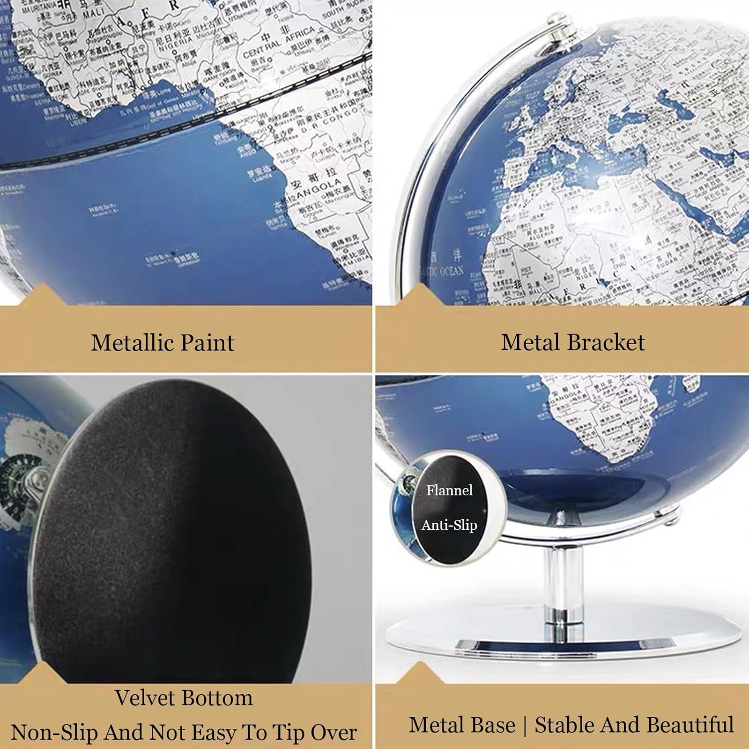 GLOBO IN METALLO: la superficie della sfera è spruzzata di metallo, la sfera ruota su un robusto supporto metallico. Utilizziamo i migliori materiali disponibili nel settore, tra cui acciaio inossidabile, inchiostro di alta qualità e così via. Punta a garantire che questo mappamondo sia un vero lusso, senza delusioni. STRUMENTI for L'APPRENDIMENTO DELLA GEOGRAFIA: la superficie verniciata metallizzata garantisce che il globo abbia una stampa ad alta definizione che non si danneggi facilmente. Mostra paesi, confini politici, capitali, città principali e altro ancora, sentiti libero di usarlo ogni giorno e di farvi riferimento in qualsiasi momento. GLOBO DI LUSSO: lavorazione di alta precisione e materiali di alta qualità fanno sì che la bellezza di questo globo non si rifletta solo nella sua superficie. Usalo come ornamento for la casa o l'ufficio o come regalo for coloro a cui piace decorare studi o caffè. Sono tutte buone scelte. GLOBO DI TESTO BILINGUE: utilizzo di etichette bilingue cinese e inglese, in linea con gli standard internazionali, maggiore interesse linguistico, 5 volte più città e una visualizzazione più completa. REGALO A SCELTA: Mappamondo da tavolo che porta sia ornamento che conoscenza, aiuta a sviluppare conoscenze, abilità linguistiche e cognitive. Regalatelo ai tuoi amici che sono genitori, questo sarà il regalo di festa più necessario.