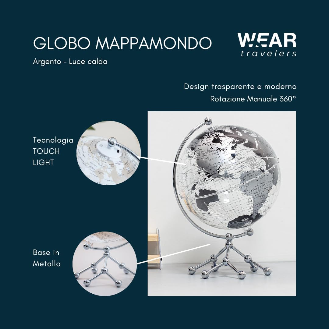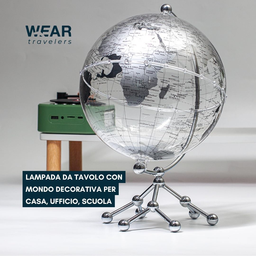 DESIGN TRASPARENTE E MODERNO: La sfera in materiale acrilico trasparente, con dettagli geografici colorati, arreda con stile ogni ambiente: perfetta per casa, ufficio o studio. La lampada ha una dimensione complessiva di 30x22 cm e il diametro del globo è di 20 cm. TECNOLOGIA TOUCH LIGHT: Si accende e si spegne semplicemente con un tocco! Nessun interruttore visibile, per un’esperienza elegante e moderna. ROTAZIONE A 360°: Il globo ruota manualmente in tutte le direzioni per una visione completa del pianeta. Un’esperienza interattiva e coinvolgente. MATERIALI DI QUALITÀ: La sfera in acrilico trasparente e la base in metallo lucido conferiscono al globo resistenza e un’estetica moderna, perfetta per ogni ambiente. STRUMENTO DIDATTICO PER GRANDI E PICCOLI: Mostra continenti, capitali e rilievi in modo chiaro. Ottimo per insegnare la geografia a bambini o per decorare ambienti educativi. IDEA REGALO ORIGINALE: Regalo elegante e intelligente per compleanni, lauree, Natale o inaugurazioni. Adatto a viaggiatori, studenti e amanti del design.