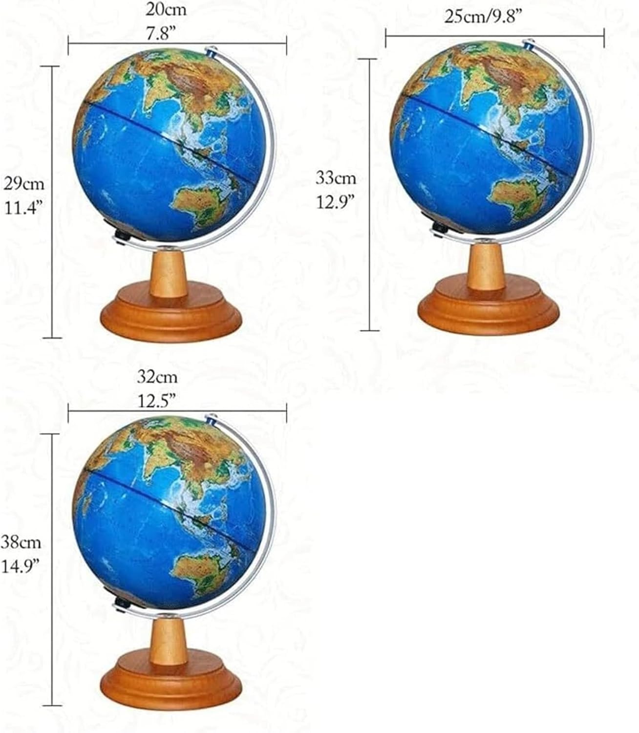 Usa questo globo per espandere i tuoi orizzonti e migliorare la tua comprensione della Terra e della sua geografia! Fornisce un modo divertente e conveniente per apprendere l'educazione geografica a casa, in classe o in ufficio. Polistirolo ad alto impatto, base in legno. Non dannoso per la salute. Il mappamondo vintage a LED illuminato è supportato da una struttura in metallo e una base in legno, garantendo stabilità e durata su un tavolo o una scrivania. Trova la campagna o il lago al buio o usalo come luce notturna quando ti addormenti. Non solo migliorerai le tue abilità geografiche, ma il mappamondo è anche dotato di luci LED integrate. Bilingue in cinese e inglese, in linea con gli standard internazionali, più interessante, 3 dimensioni.