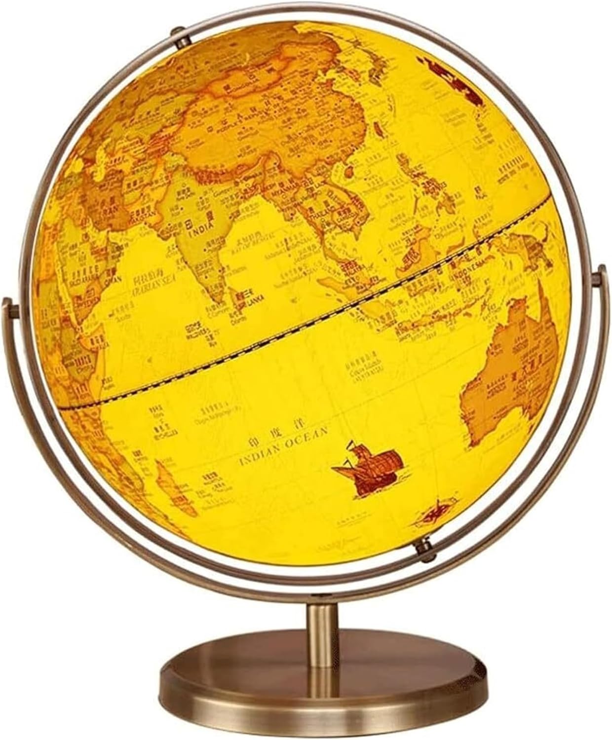 Usa questo globo per espandere i tuoi orizzonti e migliorare la tua comprensione della Terra e della sua geografia! Fornisce un modo divertente e conveniente per apprendere l'educazione geografica a casa, in classe o in ufficio. Rivestimento fotovoltaico ecologico, ABS, materiale di base: base in metallo, versione: nuova versione, metodo di rotazione: trazione manuale. Staffa metallica, fissata con viti, non facile da staccare. La visiera antica e la base in metallo di alta qualità aggiungono classe a qualsiasi stanza La base in metallo e il velluto sono antiscivolo, resistenti e non facili da stabilizzare; rotazione flessibile, nessuna mano tagliata, nessun inceppamento della palla, struttura metallica, bella e suggestiva. Questo mappamondo illuminato 2 in 1 con supporto non solo può fornirti una mappa del mondo completa, ma anche migliorare le tue abilità geografiche. Puoi anche accendere la luce per trasformarla in un bellissimo globo luminoso che può essere utilizzato come lampada da scrivania o per studio notturno.