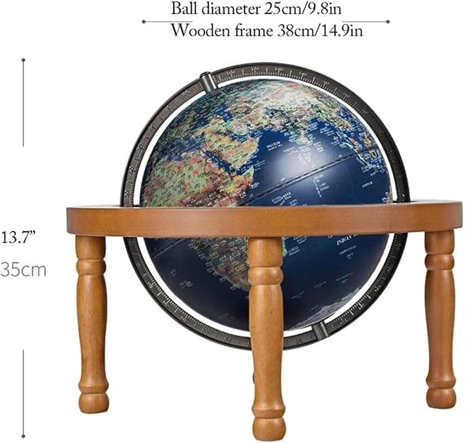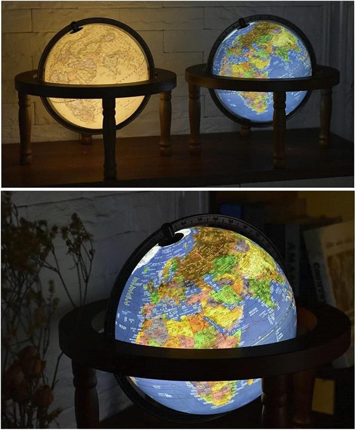 I globi sono eccellenti strumenti educativi e il modo perfetto per ispirare l'apprendimento e l'esplorazione della geografia mondiale. I globi forniscono un modo divertente per introdurre la geografia. Costituiscono ottimi strumenti di riferimento in classe. I nomi dei luoghi sferici vengono confrontati in cinese e inglese, il che rende l'apprendimento più conveniente e completo e apre la conoscenza e l'immaginazione dei bambini. Adotta un design del righello a cerchio intero, il carattere del valore di è chiaramente visibile e sono presenti protuberanze e linee; progettazione 'orario internazionale, distinguendo tra giorno e notte, puoi controllare la differenza oraria senza guardare l'orologio La scanalatura circolare inferiore in legno è fissata in posizione, la sfera può essere ruotata di 360 gradi e non c'è angolo morto for la visualizzazione, quindi non preoccuparti di non vedere il circolo polare artico. Luce tattile ricaricabile, tocca la piccola perla gialla for accendere e spegnere la luce, premere a lungo for regolare la luminosità della luce, la luce è morbida e confortevole; quindi può diventare una bellissima palla luminosa for l'apprendimento notturno.