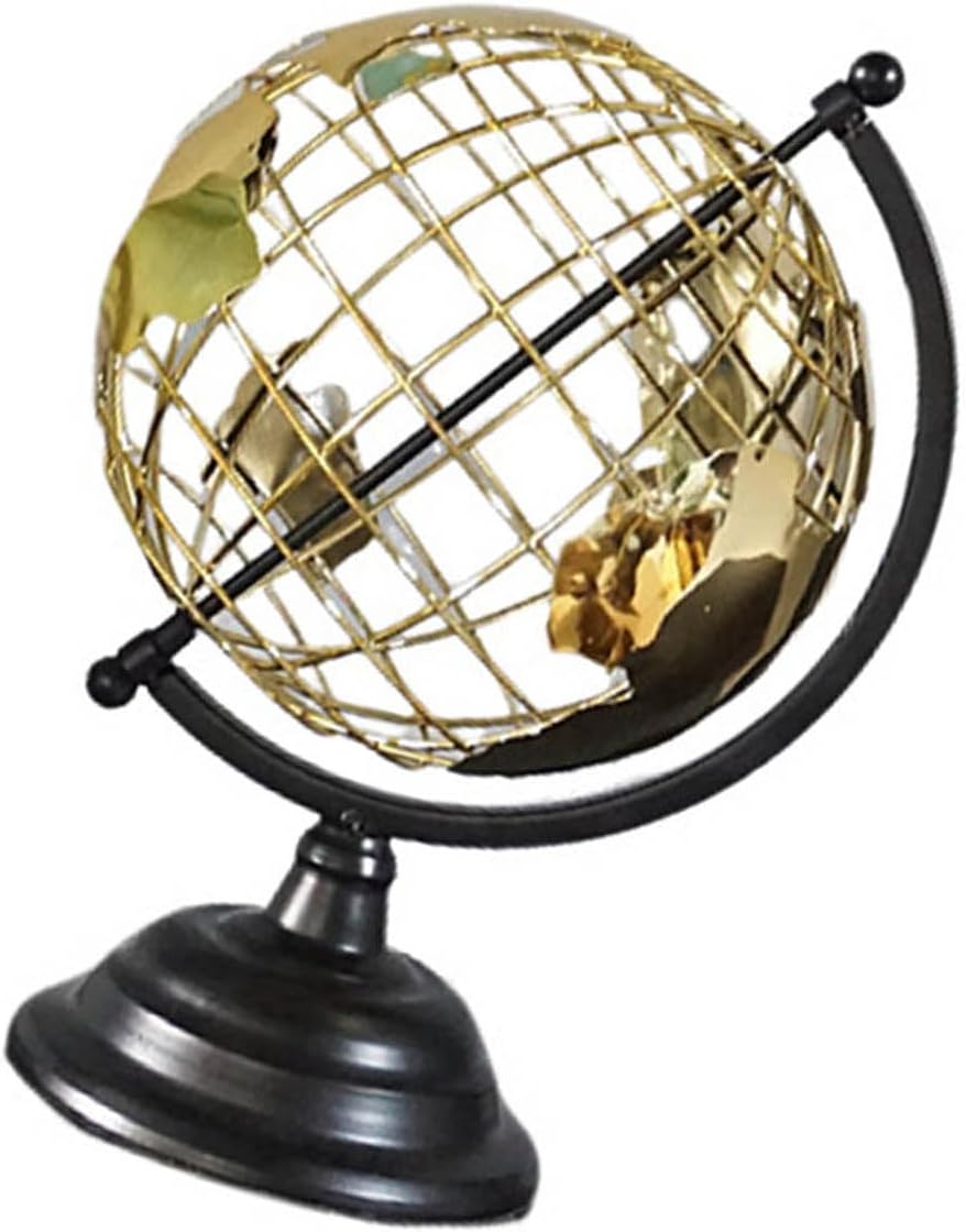 Elevateds Contemporarys decorazione per la casa con scultura in metallo Globes Featurings telaio a filo aperto e base dorata, fondendo artistico e fascino educativo. In ferro con finitura e oro intricato, questo mappamondo da tavolo completamente assemblato presenta una sorprendente struttura con cornici aperte per una visuale. Per gli appassionati di decorazione moderna, educatori o in cerca di viaggi sofisticati globi decorativi del mondo che combinano funzionalità e fascino estetico. Display come una conversazione che inizia soggiorno, uffici o biblioteche, dove le sue opere d'arte completano interni e display neutri Toned. L'esterno del filo di precisione replica i continentali, creando profondità pur mantenendo la portabilità per il posizionamento dei globi decorativi.