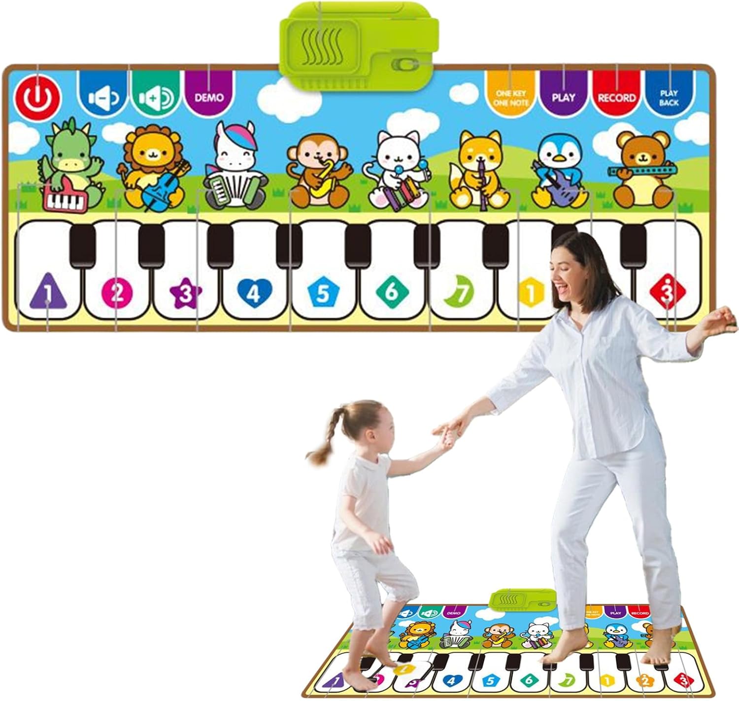 Abilità di ascolto: promuovi la concentrazione di ascolto e elaborazione uditiva con un tappetino da piano giocoso che costruisce la comprensione del ritmo attraverso l'esplorazione pratica. Ideale per nutrire lo sviluppo cognitivo precoce Colori vibranti: questo tappetino per pianoforte da pavimento presenta colori ad alta saturazione per aumentare le capacità di riconoscimento del colore migliorando al contempo il fascino estetico visivo. Il suo design artistico eccita il potenziale cognitivo visivo Strumento di apprendimento multisensoriale: questo mat di pianoforte per bambini coinvolge i bambini nelle attività di associazione logica del suono, emozionante sviluppo di intelligenza poliedrica attraverso il gioco musicale Motor Skill Builder: stimola i movimenti del corpo e l'apprendimento uditivo con questo tappetino per pianoforte interattivo. I bambini perfezionano il coordinamento degli occhi a mano premendo i tasti o calpestando le note Più gioia interattiva: questo tappetino per pianoforte presenta scale a 8 note e molteplici effetti sonori per il gioco su richiesta o casuale. Ispira curiosità musicale e maggiore divertimento attraverso l'esplorazione pratica e l'eccitazione uditiva