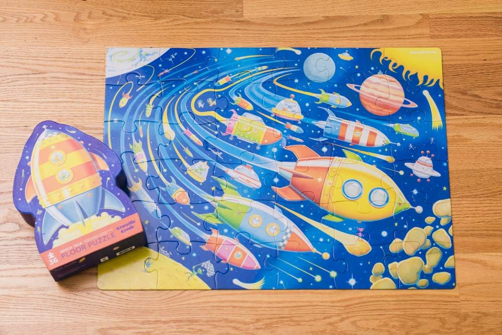 Modello puzzle 36 pezzi Puzzle a Forma/Corsa allo Spazio Puzzle a Forma 36 pezzi/Corsa allo Spazio del marchio Crocodile Creek CROCODILE CREEK: i prodotti di questo marchio sono realizzati con materiali della migliore qualità Puzzle: seguire sempre le raccomandazioni d'uso del produttore riguardanti età e/o peso Per un utilizzo corretto e sicuro del prodotto, leggere sempre le avvertenze di sicurezza