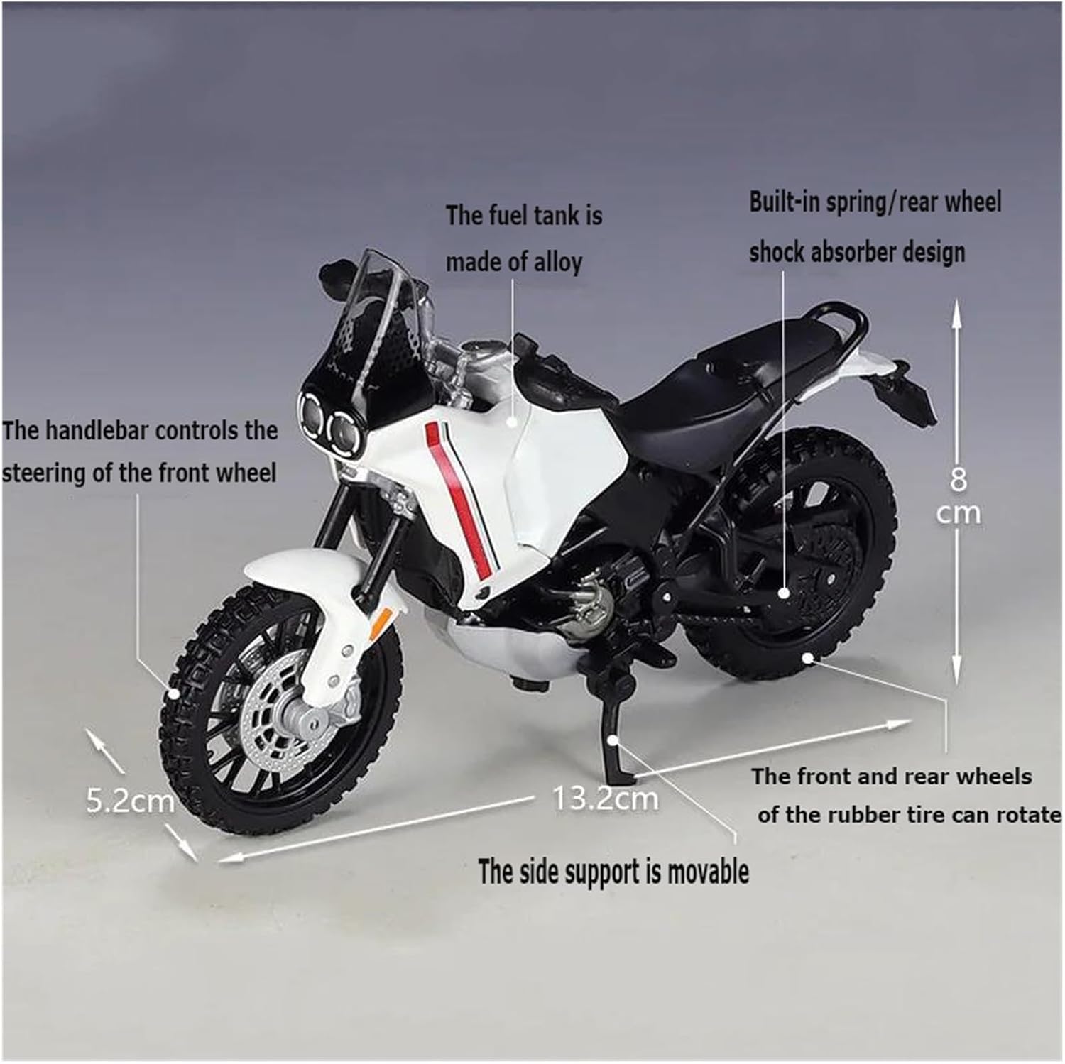 Realizzato in materiale pressofuso per modellini di motociclette e plastica, la parte dello pneumatico è in gomma. Lasciatevi stupire dagli squisiti dettagli, dal realismo e dall'autenticità di questa incredibile replica. Replica di un modello di moto pressofusa per completare o arricchire la tua collezione di modellini. Questo modello di moto è estremamente dettagliato e dotato di pneumatici in gomma girevoli, cavalletti funzionanti, manubrio regolabile e ruota anteriore regolabile. L'eccellente abbinamento dei colori esalta l'aspetto estetico del modello di motocicletta, mentre i dettagli realistici e la simulazione proporzionale lo rendono perfetto per la decorazione di collezioni. Durante il processo produttivo, effettuiamo costantemente test per garantire la qualità del prodotto. Per qualsiasi domanda, non esitate a contattarci.
