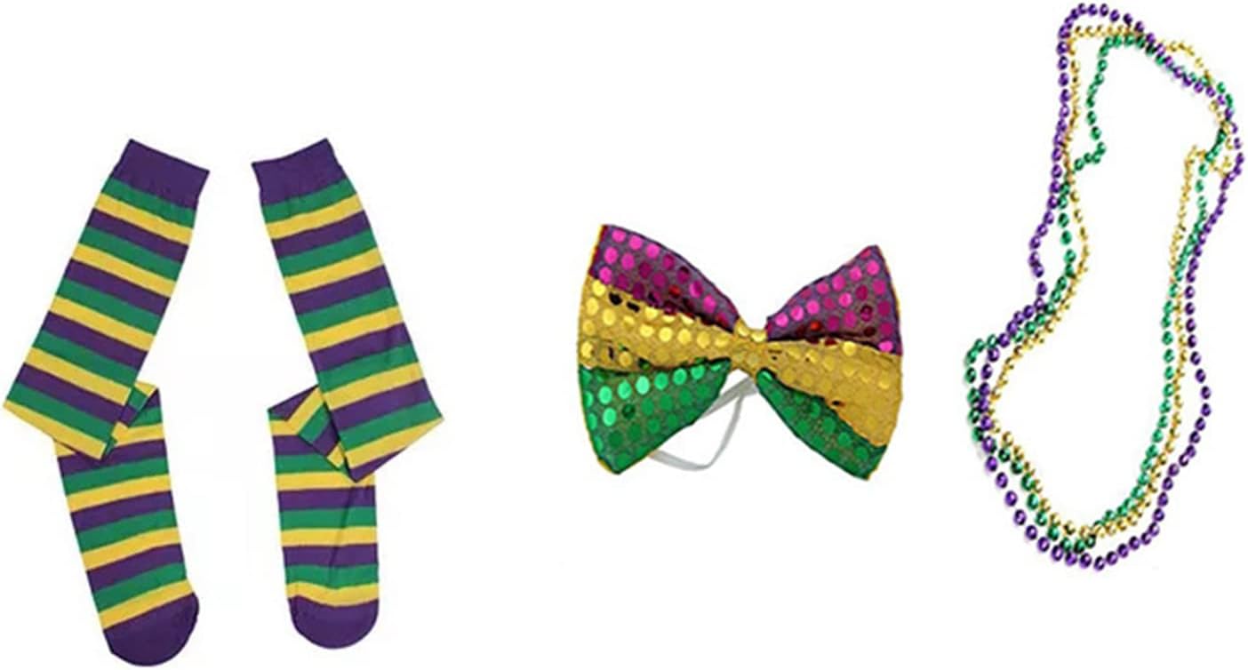 Mardi Gras - Set di accessori per costume a righe lunghe, calze Mardi Erba con perline lucide, per adulti e bambini Caratteristiche: Premenditi quando indossi questi accessori in costume insieme, puoi distinguerti alla festa, aumentare il divertimento delle feste, goderti l'intero processo di festa e renderti più diverso e vivace. Mardi Gras Collana con perline a righe, guanti, eyemask, fiocchi, 2 confezioni contengono cose diverse, si prega di confermare che prima dell'acquisto si prega di soddisfare le vostre esigenze Mardi Gras e accessori per costumi Independence Day. Varie applicazioni, questo accessorio per costume patriottico, adatto per feste, festival e feste a tema e adatto anche per spettacoli e spettacoli Materiale di qualità Mardi Gras Set di accessori per costume in tessuto, leggero, morbido, traspirante. Si indossano comodamente. Regalo meraviglioso, il costume da Mardi Gras può essere un regalo unico per amici, familiari o per te stesso. Specifiche: tessuto. Stile: 1,2 La confezione include: 1 set costume da erba Mardi. Nota: Si prega di considerare un margine di errore di 1-2 cm a causa della misurazione manuale. A causa della differenza tra i diversi monitor, l'immagine potrebbe non riflettere il colore reale dell'articolo.