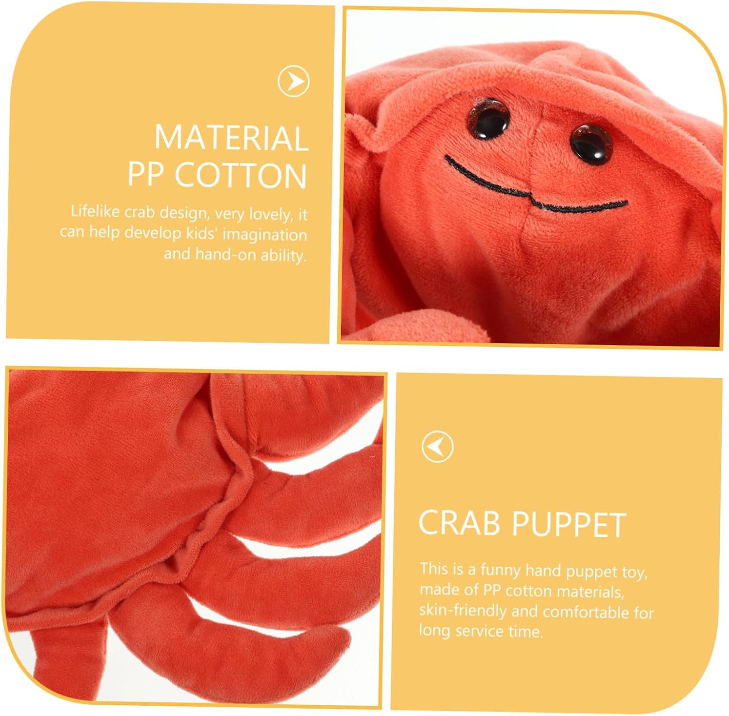 Burattino di peluche - Eccellente interattivo per la casa, la scuola, l'asilo e altri centri di apprendimento, burattino decorativo a mano Burattini a mano per - La scelta di una marionetta con un motivo a forma di granchio dei cartoni animati incoraggia la creatività e la comprensione di tuo figlio. Simpatici burattini a mano con animali Burattino con dita di granchio - Il nostro burattino a mano è realizzato in morbido materiale di cotone PP, che invita alle coccole ed è lavabile e facile da pulire. Burattini: con il burattino a mano gli adulti possono raccontare una varietà di storie. Il peluche è molto divertente, burattino a mano granchio burattino a mano - aiuta a sviluppare la destrezza, la creatività, il vocabolario e l'immaginazione del bambino e migliora anche la comunicazione emotiva tra il bambino e i genitori, genitore-figlio interattivo