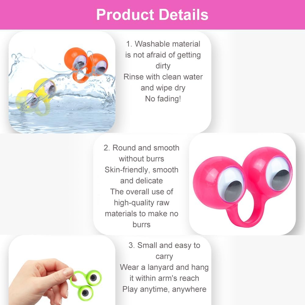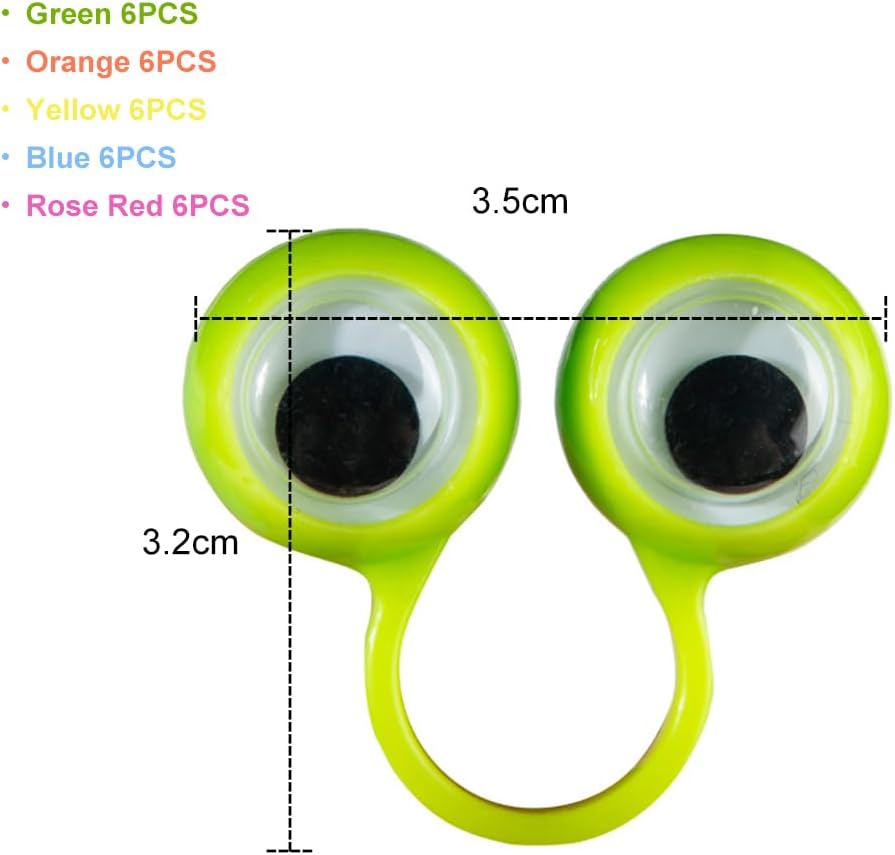 【Dimensioni corrette】 I nostri anelli per bulbo oculare misurano circa 3,5 * 3,2 cm, che possono essere regolati di conseguenza; La dimensione dell'anello è adatta per la maggior parte dei ragazzi e delle ragazze con cui giocare. 【Sicuro】 Realizzati in ABS, robusti e non facili da rompere, sono anche sicuri e non causeranno alcun danno ai tuoi bambini, sono marionette da dito con gli occhi grandi. ed è liscio e confortevole al tatto. 【Set di marionette da dito per gli occhi】 Riceverai 30 anelli per marionette da dito per gli occhi in 5 colori, sufficienti per soddisfare le tue esigenze, puoi anche condividerli con la tua famiglia e i tuoi amici. Adatto dai 3 anni in su Perfetto per spettacoli di bambole in miniatura o giochi con gli occhi a una festa di compleanno per bambini! 【Ampie aree di utilizzo】Marionette da dito colorate applicate come piccoli oggetti di scena interessanti per spettacoli teatrali, insegnamento, giochi di ruolo, narrazione e qualsiasi attività su cui dovrebbe concentrarsi l'attenzione dei bambini.