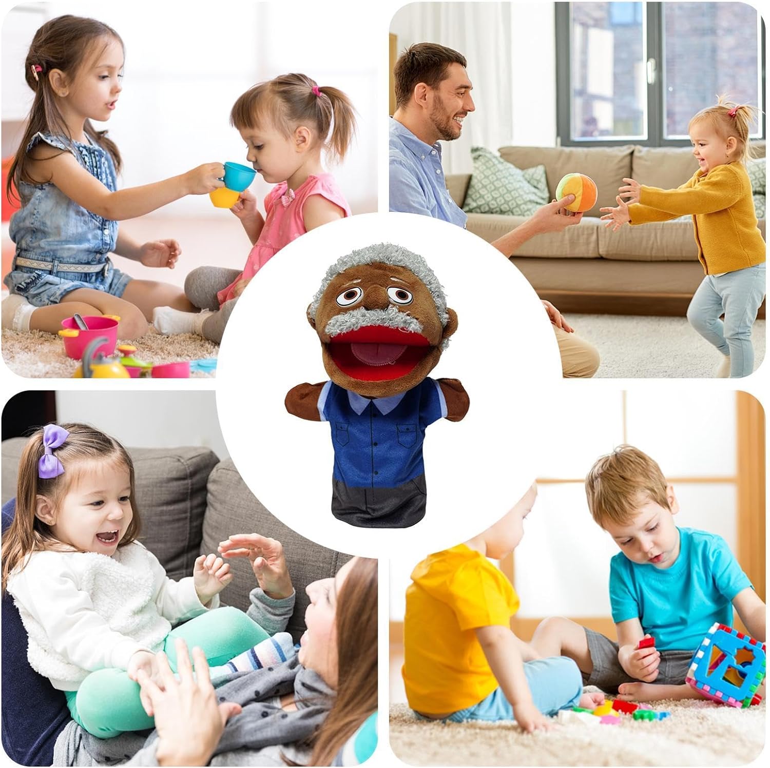 Insegna valori positivi: promuovi i valori familiari e rafforza i legami familiari attraverso la narrazione e le attività di gioco di ruolo con la nostra marionetta giocattolo. Migliora il legame familiare in modo divertente e interattivo Ispira la consapevolezza culturale: caratterizzato da un realistico design familiare nero, il nostro giocattolo burattino a mano promuove la consapevolezza culturale e la curiosità nei bambini introducendoli alle diverse dinamiche e tradizioni familiari Tocco confortevole: realizzati in morbido peluche e materiale peluche delicato sulla pelle, i burattini per famiglie garantiscono un'esperienza di gioco sicura e confortevole per i bambini Divertimento educativo: incontra diversi anziani e scopri le relazioni familiari attraverso un gioco coinvolgente, aiutando i bambini a comprendere i membri della famiglia e i loro ruoli Aumenta l'immaginazione: le nostre marionette stimolano la creatività dei bambini, consentendo loro di creare storie e scene fantasiose. Attraverso il gioco sviluppano importanti capacità comunicative e la loro creatività fiorisce
