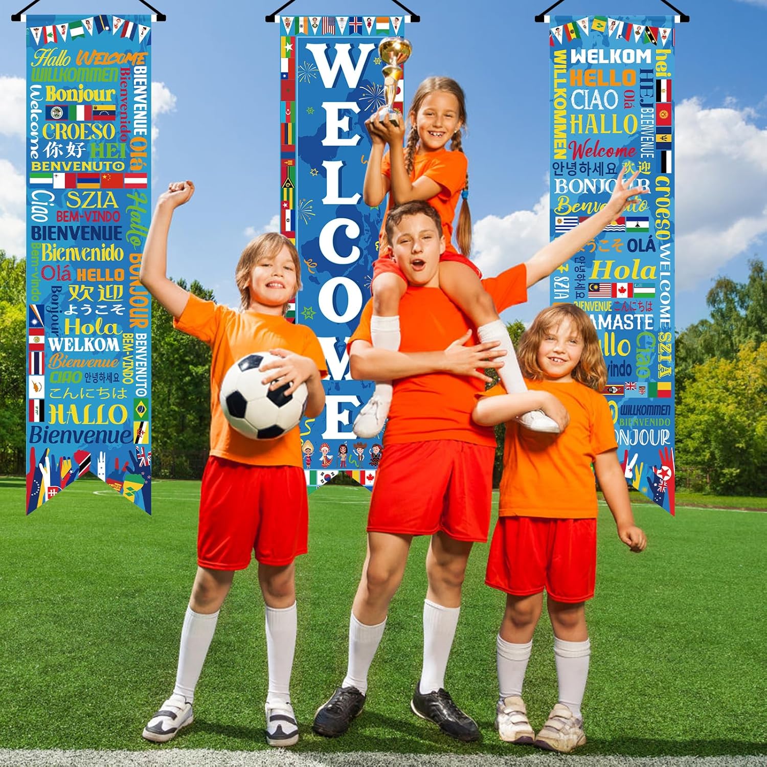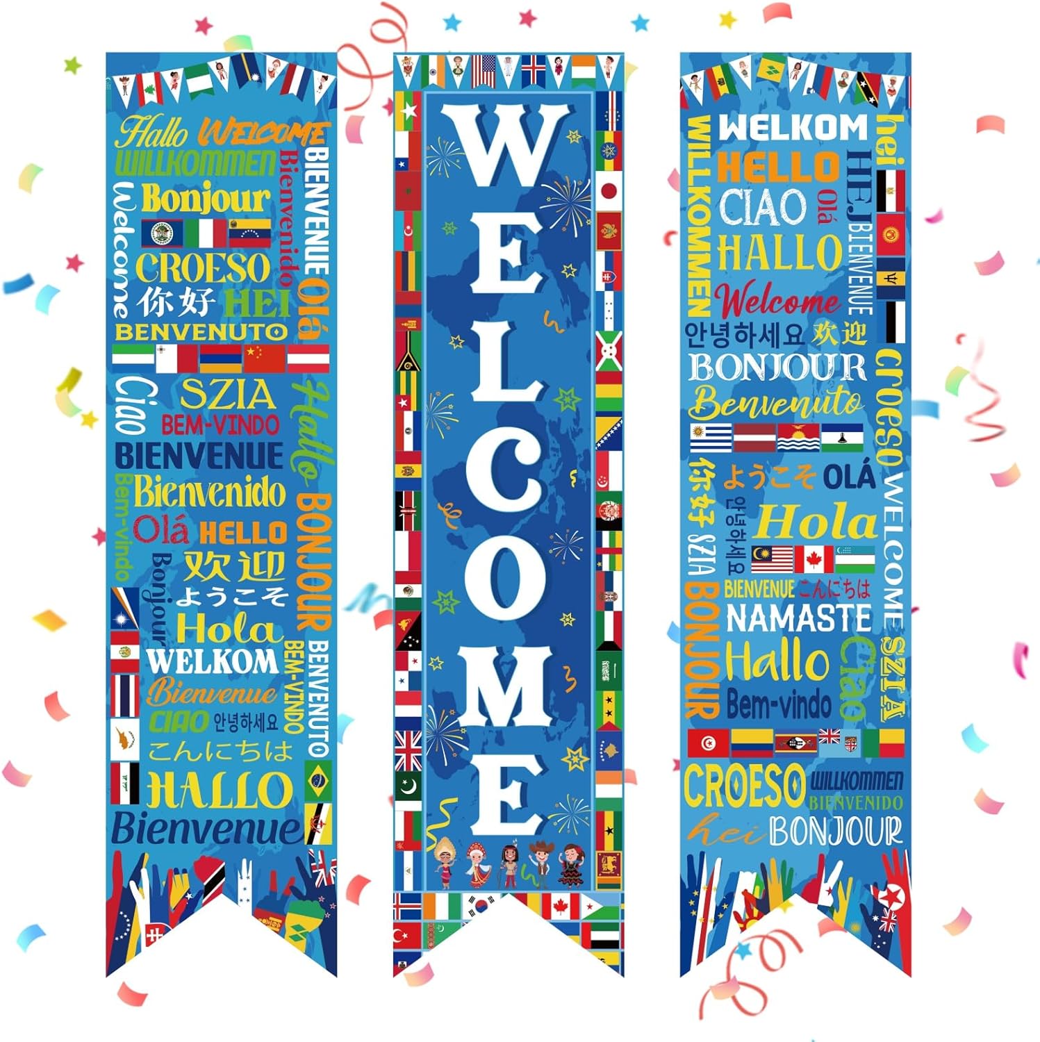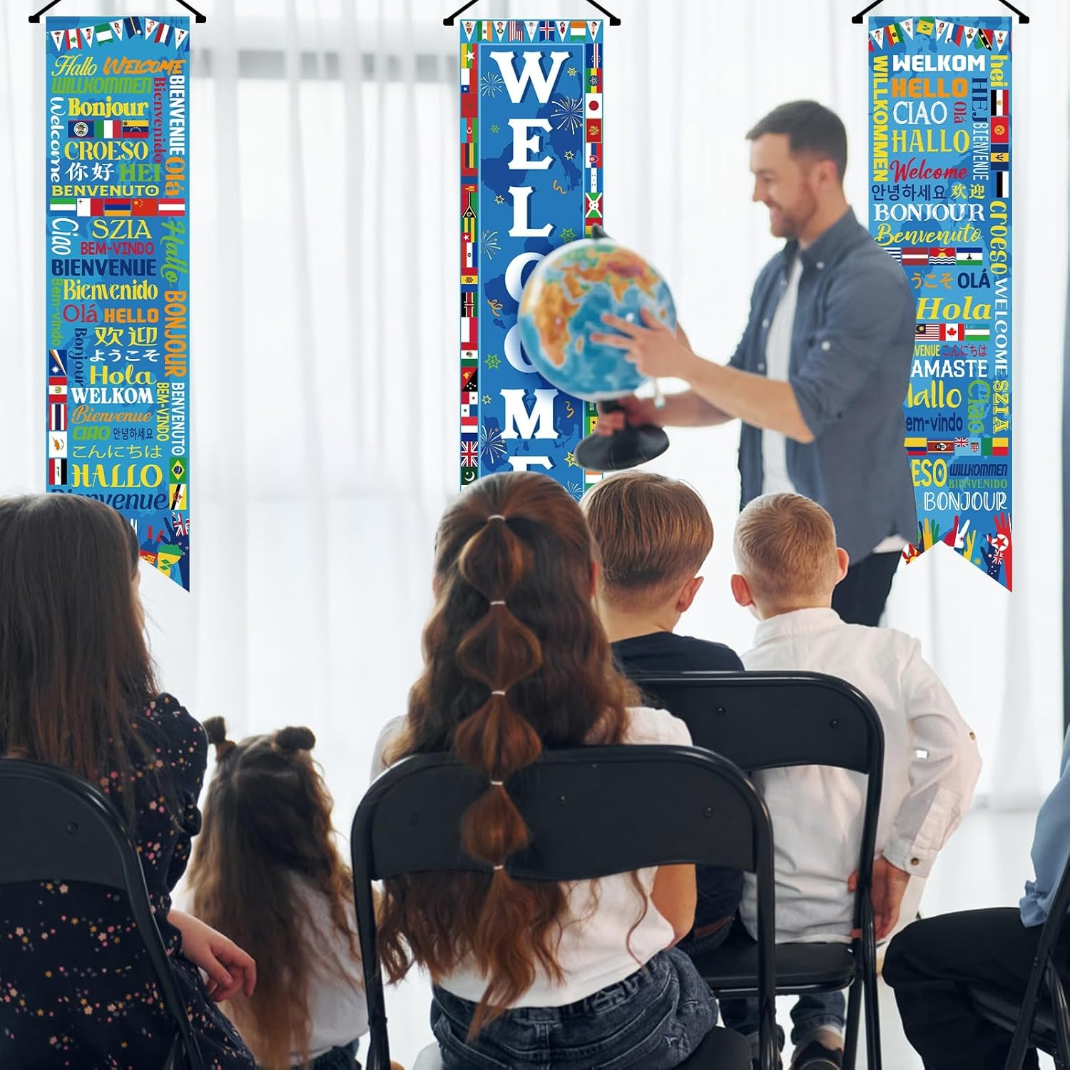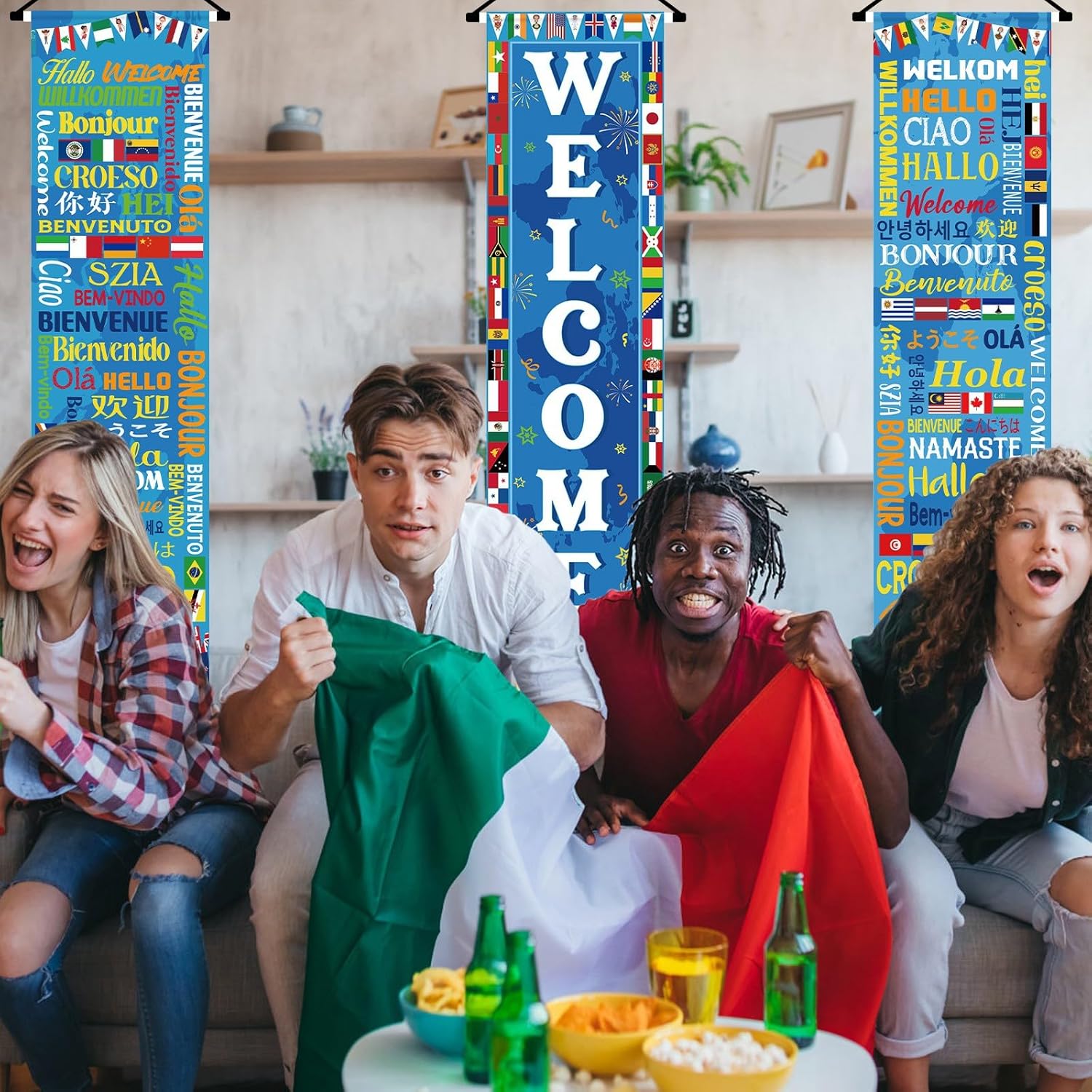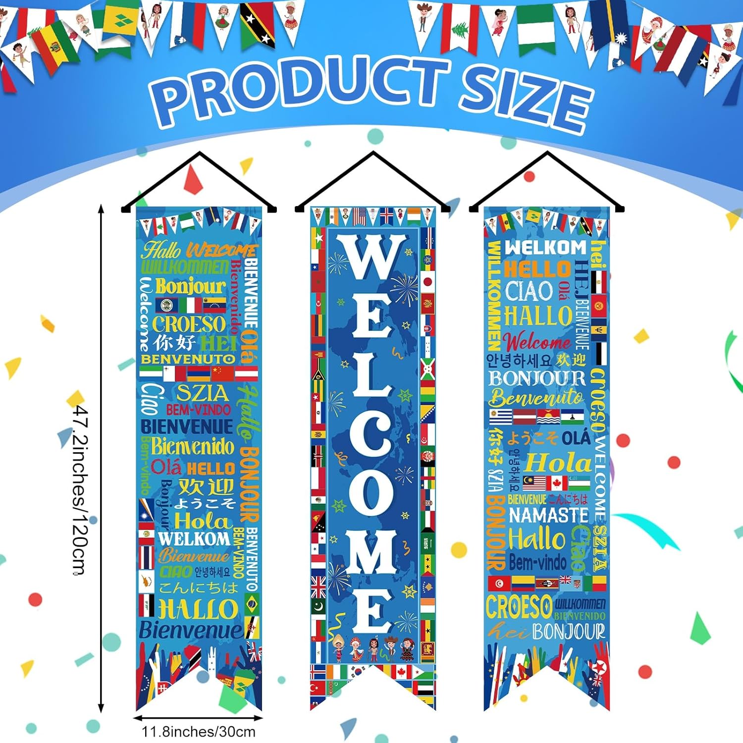 Contenuto della confezione: riceverete 3 striscioni di benvenuto con bandiera del mondo, disponibili in 3 modelli, ciascuno di ca. 30 x 120 cm. Quantità sufficiente e dimensioni adeguate per soddisfare le tue esigenze nelle celebrazioni internazionali e creare una forte atmosfera di festa sportiva. Tema internazionale della bandiera mondiale: le nostre decorazioni multiculturali sono progettate con lingue e bandiere del mondo. Uno stendardo con la bandiera del mondo è decorato con la scritta inglese "Welcome". Anche gli altri due banner scrivono [Ciao] e [Benvenuto] in diverse lingue, il che può esprimere un sentimento di inclusività e ospitalità in modo premuroso. Materiale di alta qualità: le bandiere nazionali del mondo sono realizzate in tessuto poliestere, robusto e durevole, leggero e pieghevole, lavabile e resistente agli strappi, facile da trasportare e può essere utilizzato a lungo, adatto per decorare la tua festa nazionale globale o qualsiasi evento internazionale. Facile da appendere: i nostri striscioni con bandiere internazionali del mondo sono dotati di corde facili da appendere, che possono essere appese direttamente al soffitto, alle ringhiere delle scale, alle pareti, alle porte d'ingresso, al portico, alle finestre, ai caminetti o ovunque tu voglia rendere la tua festa internazionale più colorata. Ampia gamma di applicazioni: il nostro banner di benvenuto internazionale può essere utilizzato per feste di laurea, ristoranti, eventi scolastici, agenzie di viaggio, club sportivi, giardini, aule di lingua, conferenze internazionali, feste di compleanno, conferenze internazionali e così via. Il banner di benvenuto con bandiera internazionale è la scelta perfetta per te.