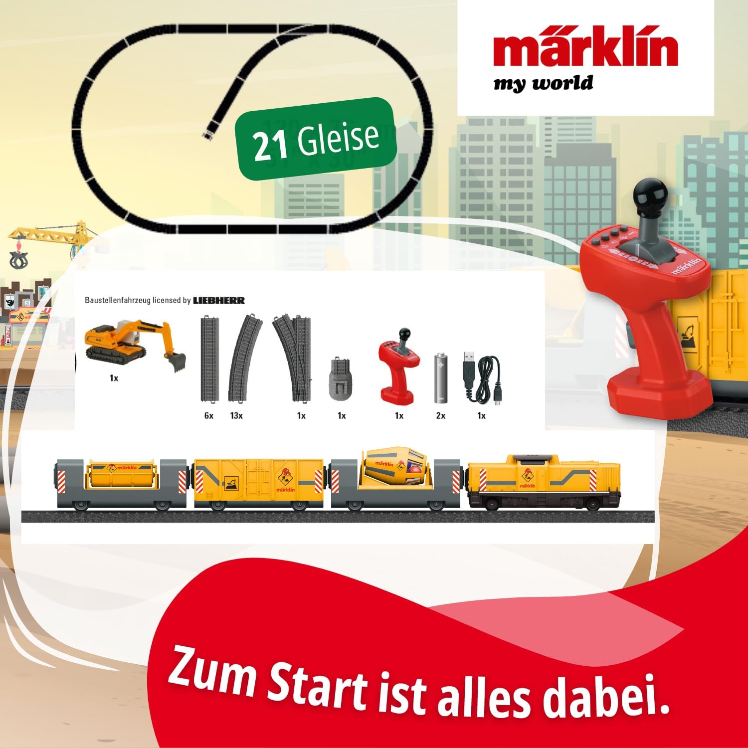 Attenzione, cantiere! – La locomotiva elettrica (lunghezza: 48 cm) è composta da quattro carri ferroviari e viene fornita con 19 x binari, 1 x morbido, 1 x cavalletto a rimbalzo e un escavatore aggiuntivo. Controllo perfetto – La torcia Märklin Power Control Stick consente di controllare perfettamente il treno con una sola mano grazie alla chiavetta di movimento e ai vari pulsanti. Gioca veloce e sicura: grazie alla funzione batteria della locomotiva elettrica e alla ricarica USB, puoi iniziare a giocare velocemente. Giunti magnetici adatti ai bambini per giocare in sicurezza. Pura sensazione di cantiere: nella betoniera rotante sono piccole sfere per giocare in modo realistico. Inoltre emettono diversi suoni da cantiere per piccoli lavoratori edili a partire dai 3 anni. Informazioni su Märklin – Il marchio ferroviario per professionisti e principianti Da oltre 160 anni. Abbiamo sempre un obiettivo in mente: avvicinare a tutte le persone l'incantesimo modellistico ferroviario. Märklin collega le generazioni!