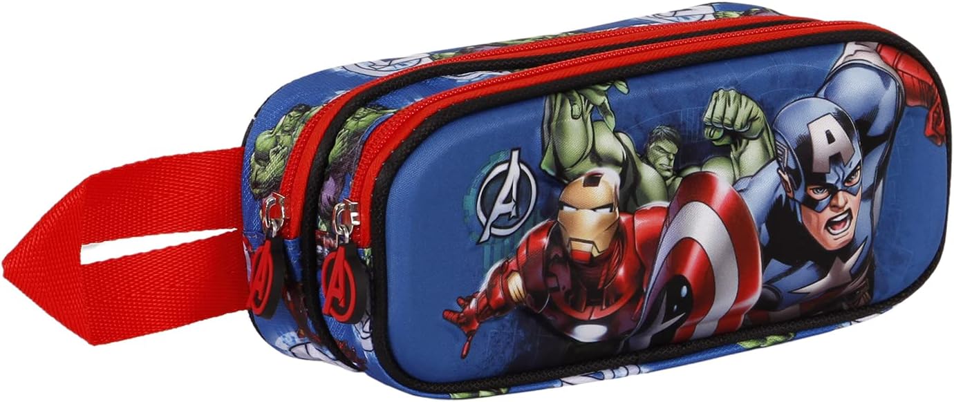 Astuccio scuola con doppio scomparto con cerniera e fodera interna. Design con frontale in rilievo.