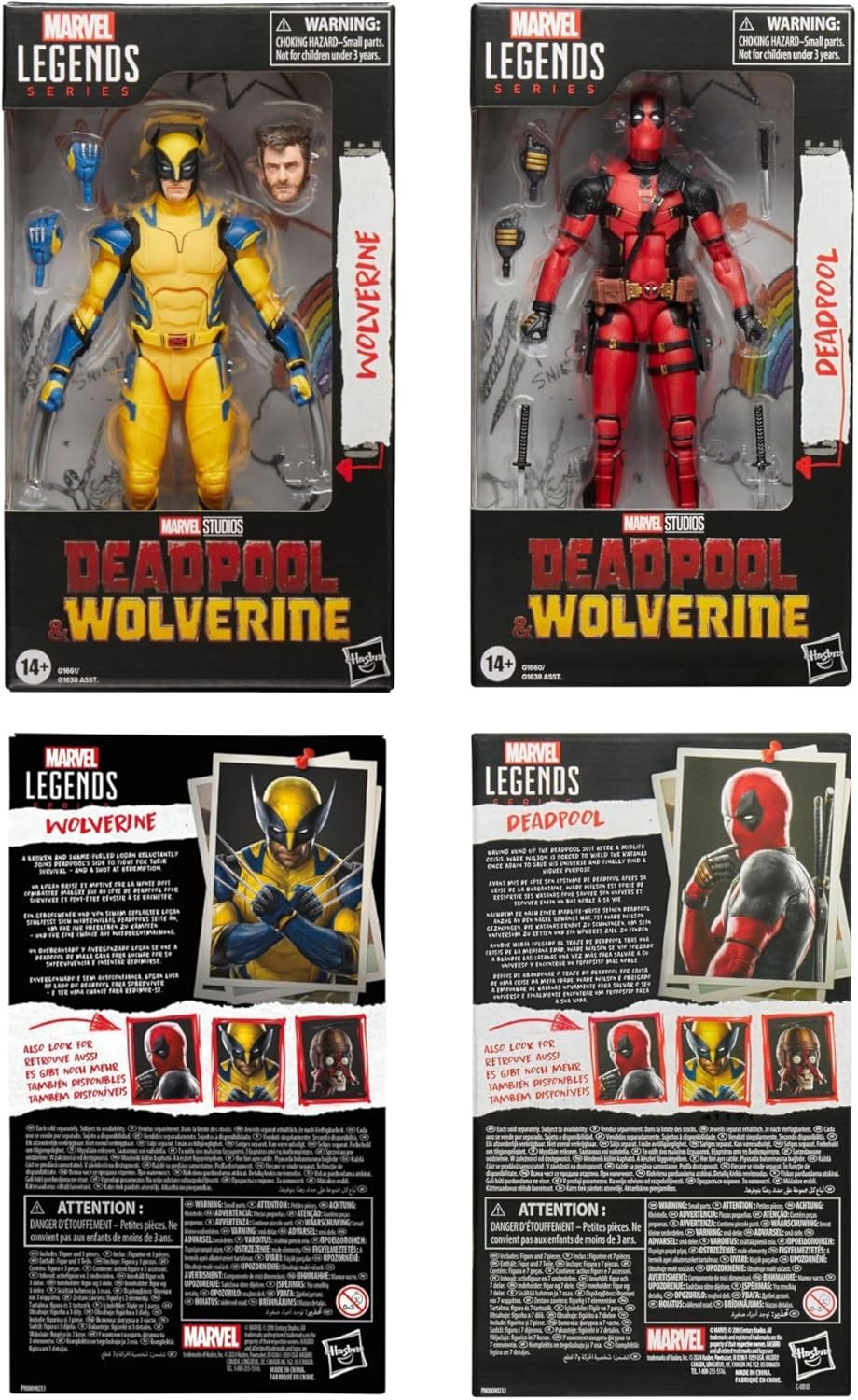 Il pacchetto include: Hasbro Marvel Legends Series Deadpool e Wolverine Collection Deadpool 6 pollici Action Figure, Hasbro Marvel Legends Series Deadpool e Wolverine Collectible Wolverine Action Figure da 15 cm Accessori ispirati al personaggio: la action figure Deadpool viene fornita con 7 accessori, tra cui le sue katane caratteristiche, 2 mani alternate e un accessorio per coltello da stivale. Wolverine viene fornito con una testa mascherata alternativa e un set di mani alternate Action Figurina da 15 cm: i fan e i collezionisti Marvel possono mostrare entrambe le action figure da 6 pollici (15 cm) nelle loro collezioni di action figure Marvel Articolazioni da esposizione: questo oggetto da collezione presenta oltre 20 punti di articolazione con testa, braccia e gambe completamente posizionabili per pose dinamiche sul tuo scaffale Imballaggio della scatola della finestra: puoi esporre il tuo fandom Marvel sul tuo scaffale con confezione da collezione con eccentrici illustrazioni ispirate al film