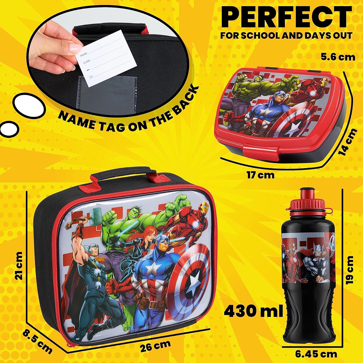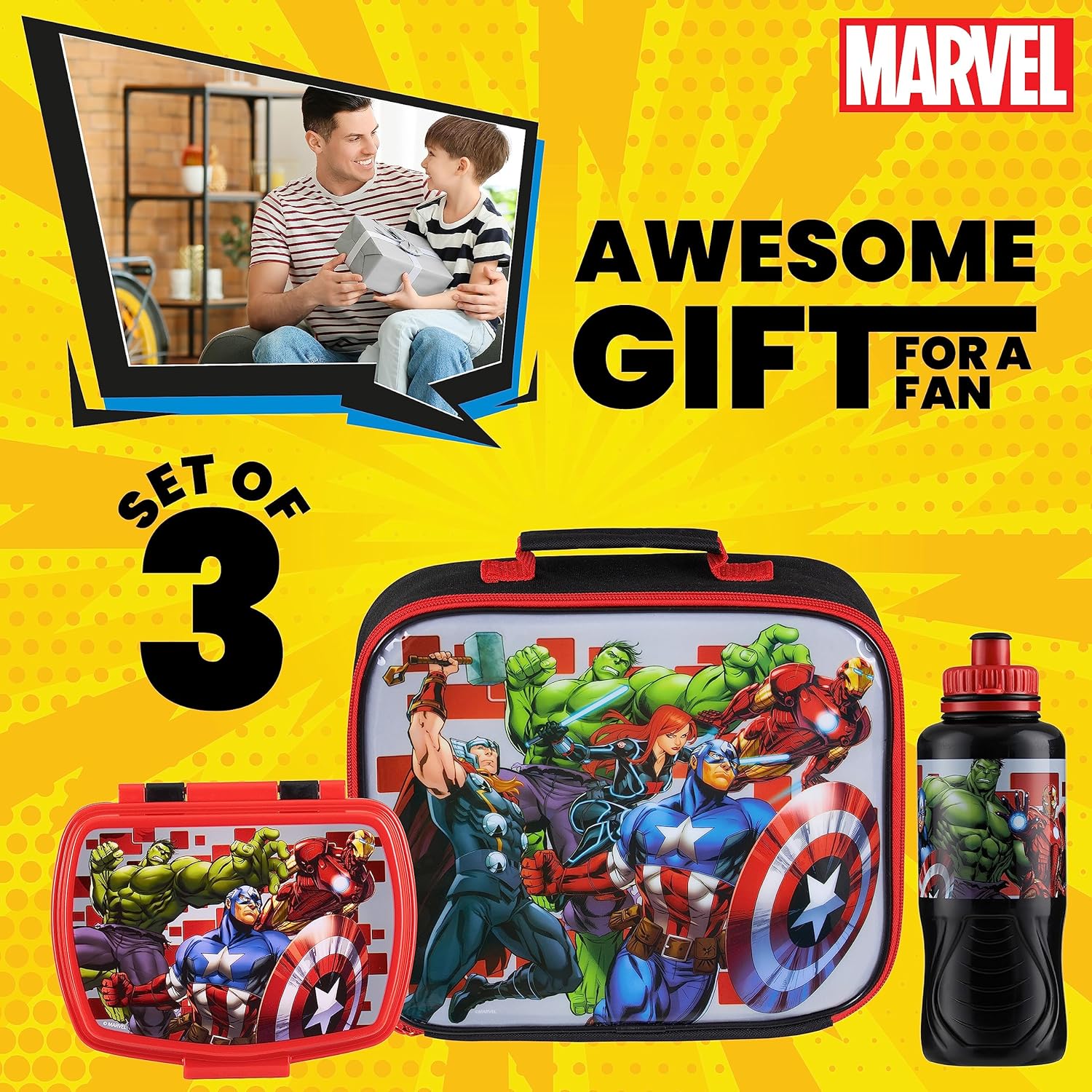 Trasforma la ricreazione in un'avventura con questo set da pranzo per bambini della Marvel! Il set comprende una borsa per il pranzo, un portapranzo e una bottiglia d'acqua. Disponibile in due modelli: Spiderman e Avengers. Non potrebbe essere più pratico! Set da 3 pezzi: contiene 1 piccola borsa termica con cerniera e targhetta per il nome, 1 contenitore per il pranzo, 1 borraccia per bambini (senza BPA, 430 ml). La borsa per il pranzo offre spazio sufficiente per il cibo del tuo bambino e lo mantiene fresco e sicuro. Il portapranzo è perfetto per spuntini o piccoli pasti e la borraccia permette al bambino di rimanere idratato. Il set è pratico e facile da trasportare, ideale per gli spostamenti. Regali Marvel per bambini: questo set con contenitore per il pranzo e bottiglia d'acqua è un'ottima idea regalo per i supereroi e i fan Marvel dai 4 anni in su, perfetto per il ritorno a scuola. Merce Marvel con licenza originale. Modelli disponibili, contenuti e ulteriori informazioni nelle immagini