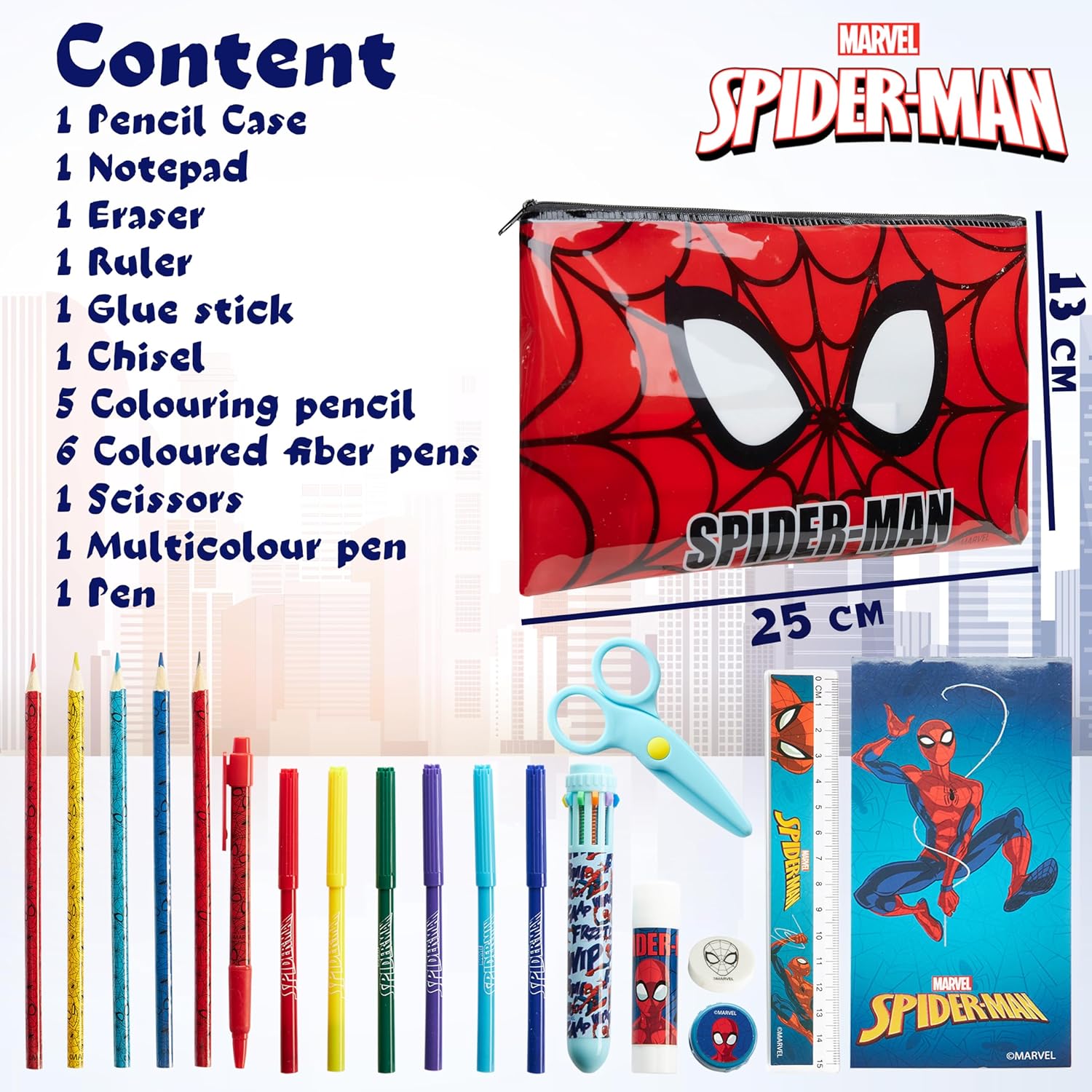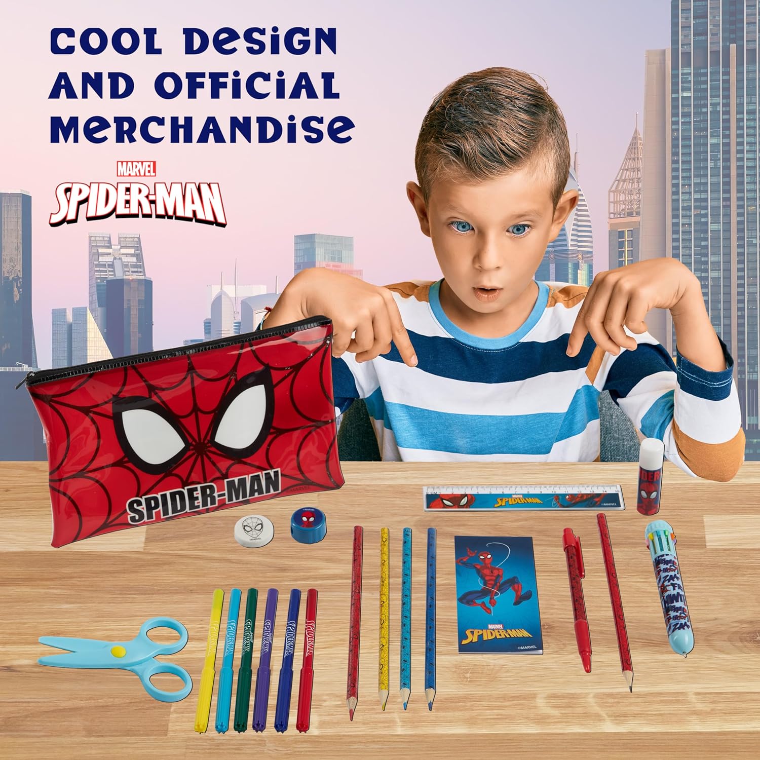 Set di Cancelleria Marvel - Migliora la loro collezione di cancelleria con il nostro emozionante valigetta colori Spiderman pieno di fantastici articoli di cancelleria. Pieno di tutto ciò di cui un giovane supereroe ha bisogno per la scuola, i compiti o le sessioni di scarabocchi creativi. Con Molti Articoli di Cancelleria Inclusi - Tuffati nel mondo Marvel con il nostro set cancelleria incluso. Dotato di uno spazioso astuccio con cerniera, una penna a sfera che cambia colore con 10 tonalità vivaci, 6 pennarelli, 4 matite colorate, un blocco note, forbici di sicurezza, una colla stick e molto altro ancora! Guarda le immagini per uno sguardo dettagliato su cosa c'è dentro. Promuovere la Creatività e la Praticità - Il nostro cancelleria per bambini funge sia da sbocco creativo che da strumento pratico. È progettato per ispirare opere d'arte fantasiose e allo stesso tempo fornire materiali essenziali per compiti e progetti scolastici. Incoraggia la creatività senza schermo con la nostra vasta gamma di utensili per colorare e articoli di cancelleria versatili. Regali Spiderman Ideali per Ragazzi - Cerchi i Spiderman regalo ideale per un giovane fan Marvel? Non cercare oltre i nostri scuola cancelleria. Che si tratti dei preparativi per il rientro a scuola, delle sorprese di Natale, dei compleanni o di qualsiasi occasione speciale, questi set saranno sicuramente una delizia. Spiderman Accessori con Licenza Ufficiale - Abbraccia l'autenticità con il nostro set cancelleria ragazzo, contenente prodotti Marvel con licenza ufficiale. Decorati con l'accattivante grafica di Spidey, i nostri articoli di cancelleria bambini sono immediatamente riconoscibili e adorati dai supereroi in erba ovunque.
