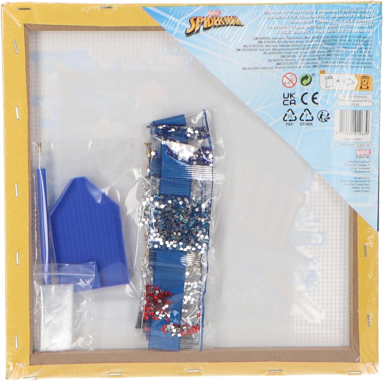 Set completo per pittura a diamante: questo set per diamond painting XL Marvel Spiderman è composto da una cornice da 29 x 29 cm con una tela Spiderman sulla parte superiore. Tutto è incluso: cera, vassoio, penna per pittura Daimond e molti diamanti