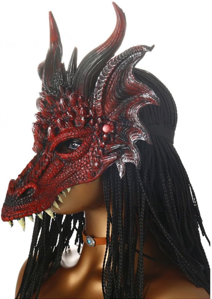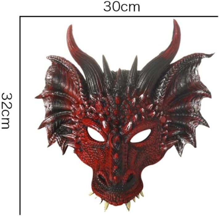 Design realistico: questa maschera da drago 3D presenta dettagli intricati come squame, corna e denti feroci, dando vita alla leggendaria bestia e migliorando il tuo costume per ogni occasione. Si adatta alla maggior parte delle dimensioni della testa: misura circa 12,7 cm di lunghezza e 32,8 cm di larghezza, questa maschera è progettata per adattarsi comodamente ad adulti e bambini più grandi, tutti possono godere del suo aspetto sorprendente. Materiale in poliresina: realizzata in robusta poliresina, questa maschera è costruita per resistere all'uso frequente durante feste di Halloween, eventi cosplay o feste in costume senza perdere le sue splendide immagini nel tempo. Comodo da indossare con cinghie elastiche: le cinghie elastiche offrono una vestibilità aderente che rimane saldamente in posizione, consentendo un comodo utilizzo durante eventi di abbigliamento, riunioni di Halloween o balli in maschera. [Accessorio emozionante per varie occasioni: eleva l'atmosfera alle feste di Halloween, alle feste in maschera e alle convenzioni comiche con questa maschera da drago, rendendola un'aggiunta straordinaria alla tua collezione di costumi.