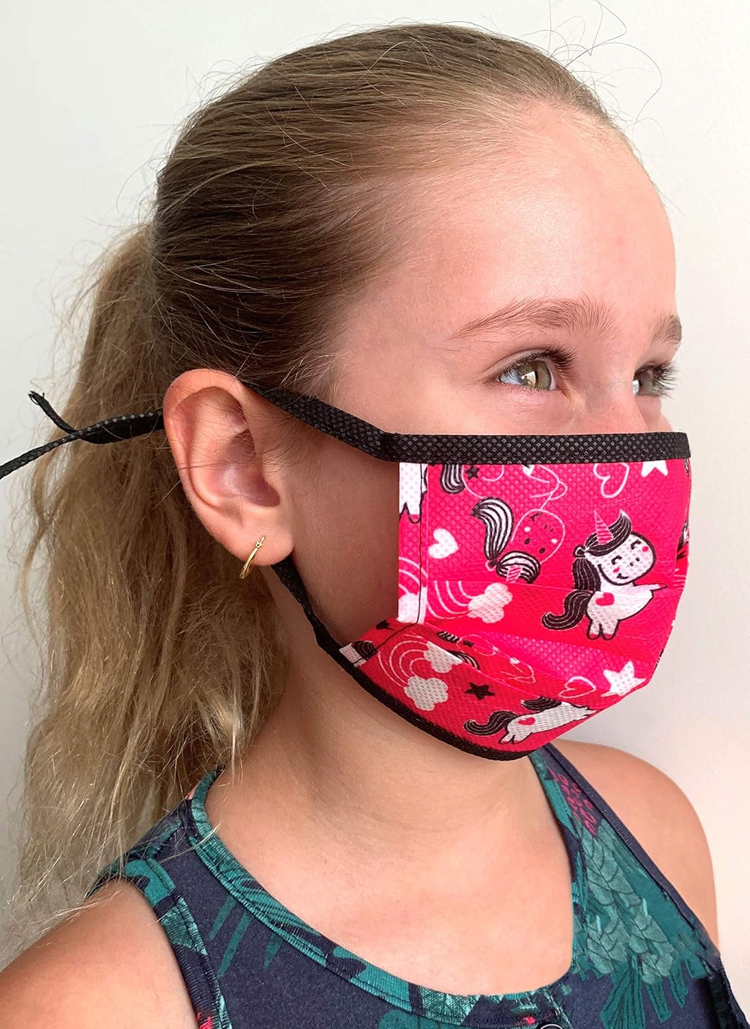 Le motif était joli donc je l ai commandé pour ma fille de 3 ans mais l usage n’est pas pratique , les attaches derrière les oreilles sont rigides et font mal et il n y a aucun moyen de le fixer sur le nez C’est donc un masque totalement inutile Économisez vos sous